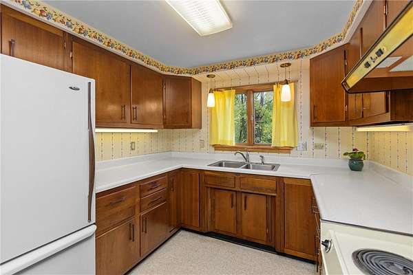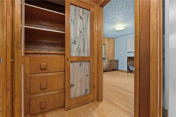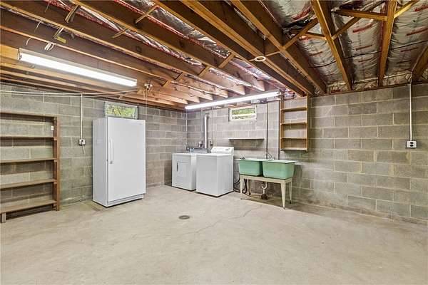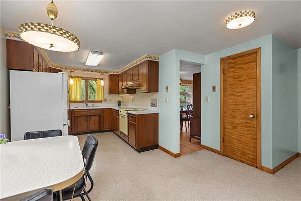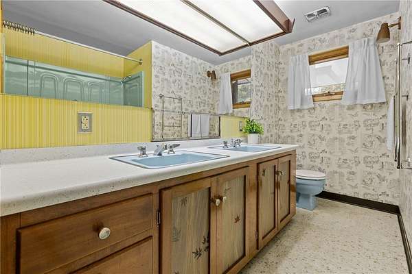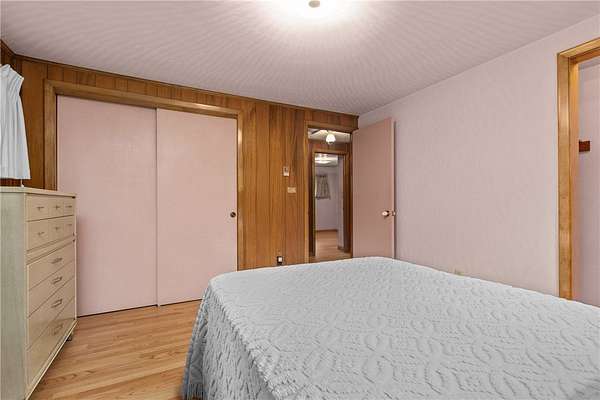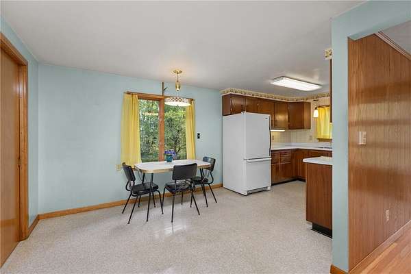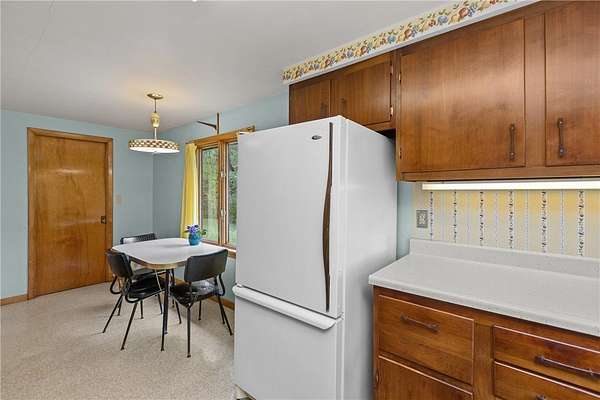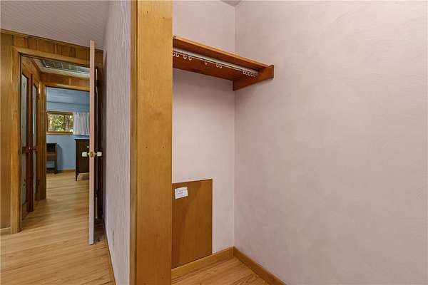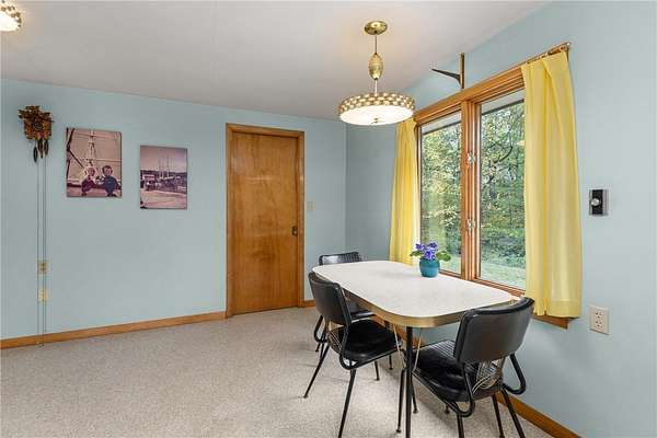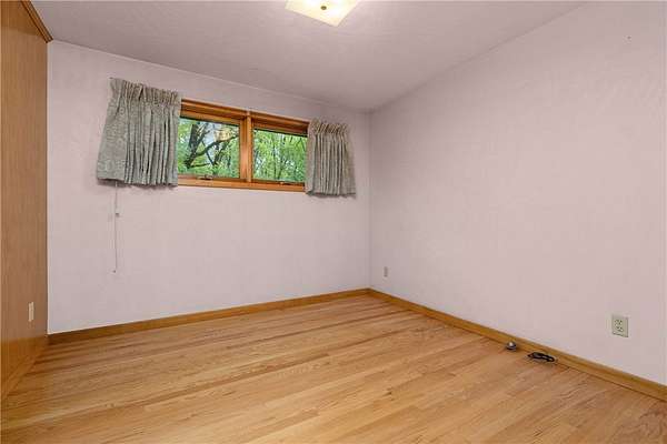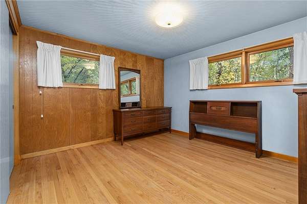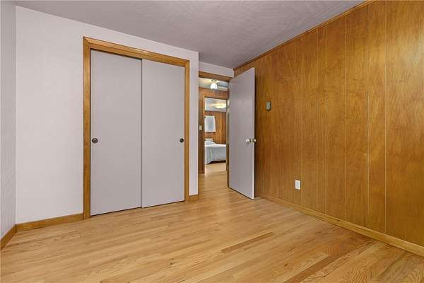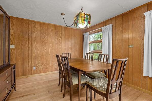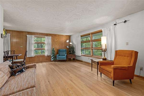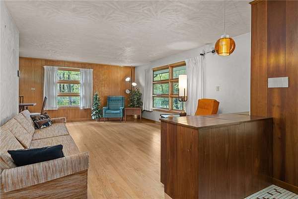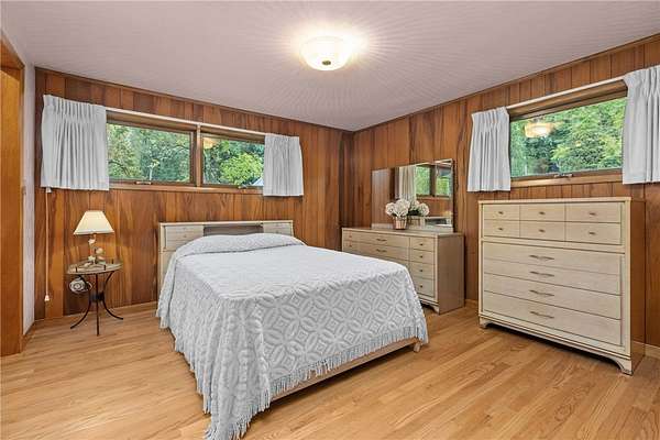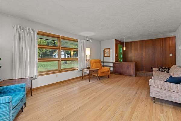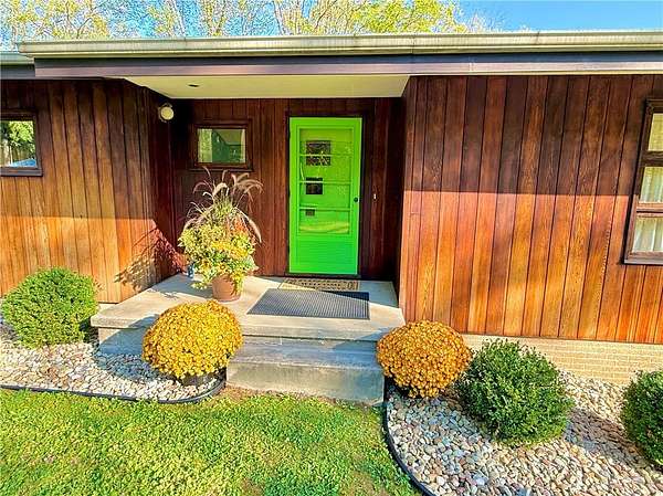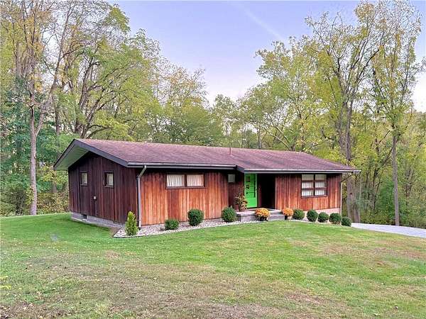 Introducing 1218 McGary Rd, a Neshannock Twp mid-century ranch set in the serene landscape of New Wilmington. This inviting Redwood-sided residence offers 1,334 sq. ft. of living space on 2.39 acres, surrounded by picturesque wooded views and farmland. Step inside to discover the timeless allure of oak hardwood floors flowing seamlessly throughout the home and decorative plasterwork enhancing the home's charm. Spacious living areas provide ample room for relaxation and entertainment. Three generous bedrooms offer a cozy retreat for family or guests. A large bathroom with dual vanities and a mid-century vibe, complemented by a custom linen closet, ensures plenty of storage and functionality. This owner-built home showcases solid craftsmanship, featuring cedar-lined closets, walnut cabinets, and cherry, golden ash, and maple paneling. The unfinished walk-out basement presents an opportunity for expansion or customization. Embrace the tranquility of country living in this delightful home.