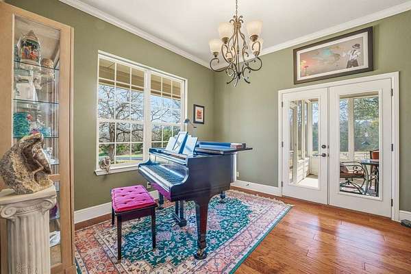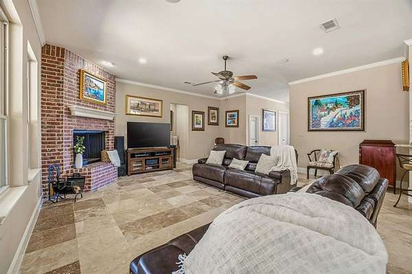 Experience elevated country living at 1218 Meander Road in Granbury. Set on approximately 5.04 scenic acres in Bentwater Estates, this beautifully crafted two-story estate offers over 3,300 square feet of thoughtfully designed living space, blending timeless architecture with the serenity of wide-open Texas skies. Built in 2009, the home showcases expansive living areas, a stately fireplace, and a layout designed for both refined entertaining and everyday comfort. Natural light pours through generous windows, framing picturesque views of the surrounding acreage and private pond with a pier and fountain — a rare feature that enhances both beauty and tranquility. The outdoor living experience is exceptional. The backyard is enhanced by stunning professional landscaping and a tranquil water feature, creating a private retreat just steps from the home. The expansive back porch is designed for entertaining, complete with a fully equipped outdoor kitchen — ideal for hosting gatherings or enjoying quiet evenings under the Texas sky. Car enthusiasts and hobbyists alike will appreciate the total of four garage spaces, including an attached two-car garage and a separate detached two-car garage, offering flexibility for vehicles, storage, or workshop space. With privacy, acreage, refined finishes, and resort-style outdoor amenities, this property delivers a rare opportunity to own a truly distinguished Granbury estate.