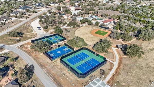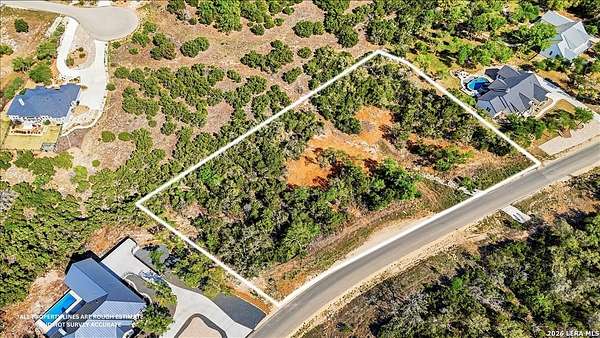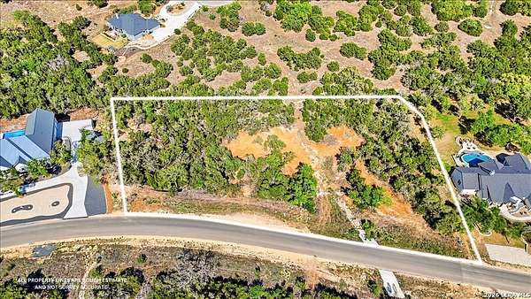 Situated on one of the highest and most desirable streets in Vintage Oaks, this 2.28-acre homesite offers a unique combination of privacy, elevation, and opportunity. Positioned near the top of the community, the property provides the potential for sweeping Hill Country views and unforgettable sunset backdrops. The lot has been partially cleared, making it easy to walk and explore while still preserving the natural beauty of mature oak trees. This thoughtful clearing helps highlight possible build sites and view corridors, giving you a clear vision of what's possible while maintaining a sense of seclusion. The terrain offers a gentle slope toward the rear, enhancing both usability and the opportunity to capture elevated views. With a generous building envelope and ample space to design, this property offers flexibility to create a custom home that takes full advantage of the surroundings. Vintage Oaks residents enjoy resort-style amenities including multiple pools, a lazy river, fitness center, miles of scenic trails, and sports courts. One of the newest amenity centers-featuring pickleball courts-is just a short walk or bike ride away. The community also benefits from a low tax rate and access to highly regarded Comal ISD, with homestead exemption eligibility. Conveniently located near Canyon Lake, New Braunfels, Gruene, and Fredericksburg, with easy access to both Austin and San Antonio, this is a rare chance to own a premium homesite in one of the Hill Country's most sought-after communities.