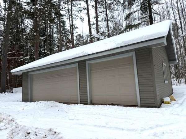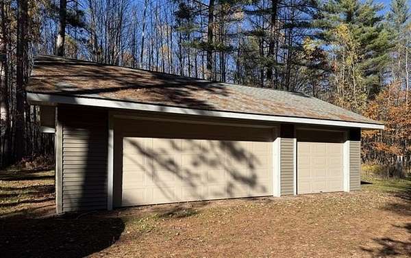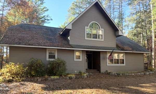 A large fish was spotted right by the dock (approximately 60' of waterfront) while placing the for-sale sign at this stunning property. This home offers 4,152 square feet of finished living space, featuring 4+ bedrooms, 3 1/2 baths, a 3-car detached garage, and a small storage shed. All this on 10 wooded secluded acres. The interior boasts spacious rooms throughout. The main level includes a primary suite with a full bathroom and walk-in closets, an additional half bath, a formal dining room, a dinette, and a full kitchen. The great room features high ceilings and a massive stone wood-burning fireplace, with a full wall of windows providing beautiful views of the backyard, deck, and Warrior Lake. The upper level includes a bedroom, a full bathroom, and a loft/family room. The lower level provides two additional bedrooms, a full bathroom, a family room, a utility/furnace room, and a workshop/storage area. Warrior Lake, located near Minocqua, Wisconsin, is a peaceful destination known for bass, panfish, and walleye. As a non-motorized lake, it offers the perfect quiet environment for paddling and fishing.