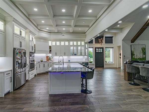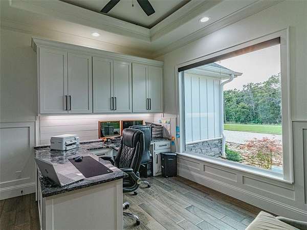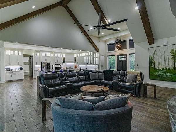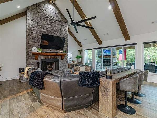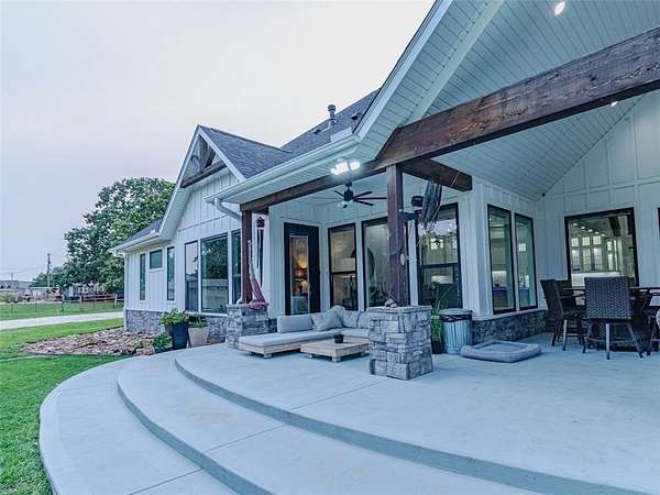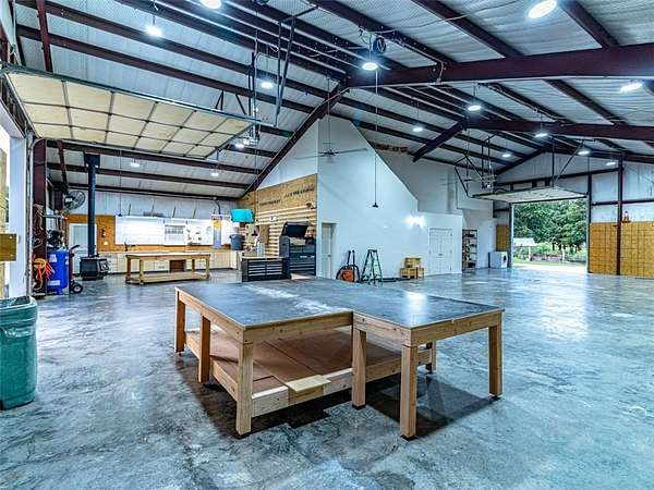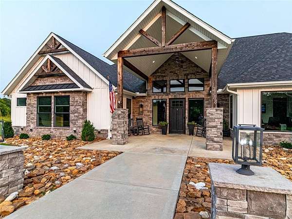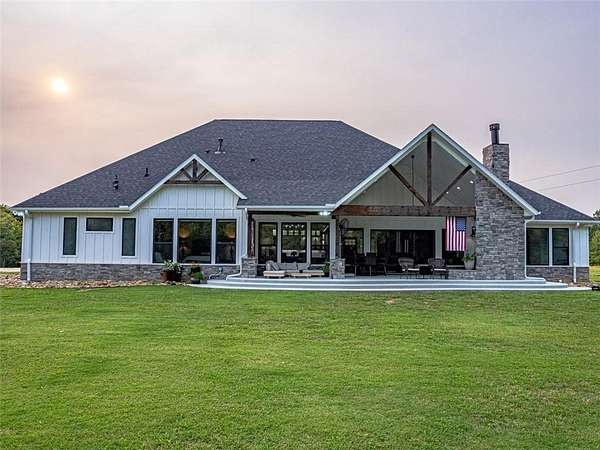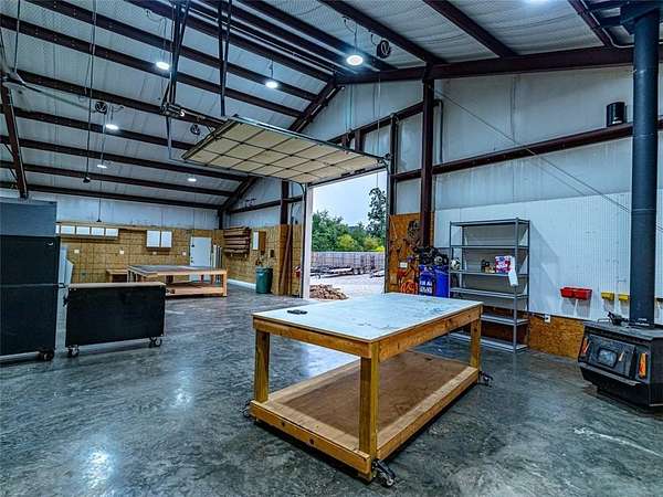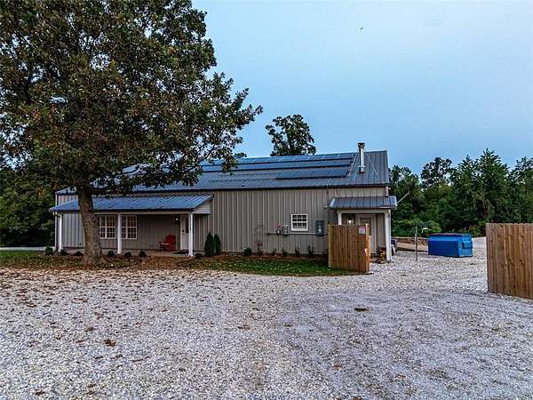 Step into the charm of this delightful 3,600 SF home with 4 cozy bedrooms nestled on 12 picturesque acres. This gem includes a spacious 3,796 SF shop with a 1,400 SF lean-to for equipment and a 1,652 SF complete apartment used as a part-time Airbnb retreat with good reviews. Embrace the farm-like allure, just a stone's throw from town. Enjoy thoughtful touches like central vacuum, spray foam insulation, radiant board heating, a covered porch, open/covered patios, a sprinkler system, security features, indoor/outdoor wood fireplaces, and a safe storm shelter. Delight in a powered greenhouse, thriving garden, serene pond, and an outbuilding with a powered chicken coop complete with a friendly goat, ducks and chickens that can stay! Inside, find granite countertops, an oversized kitchen island, clever built-ins and blackout shades throughout. A true haven of luxury.