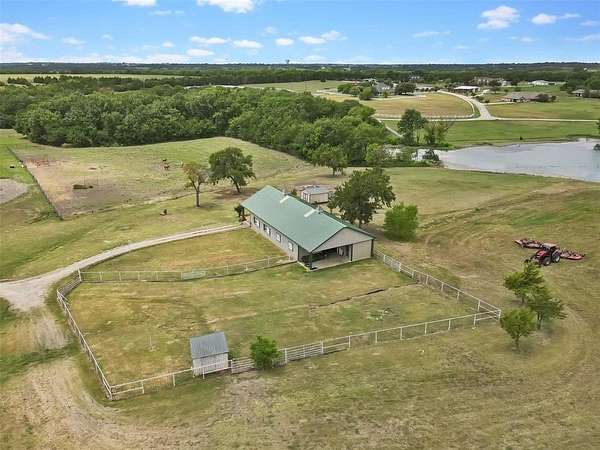 Experience the best of country living with this stunning 2,000+ sq. ft. barndominium overlooking a private lake on 4.8 acres. Thoughtfully designed for comfort and versatility, it offers an inviting living quarters with a private entry, a spacious workshop, and three premium horse stalls with windows. Imagine mornings by the water, afternoons in the workshop, and evenings watching your horses graze as the sun sets. Whether you're an equestrian lover, a hobbyist, or simply looking for a peaceful escape, this property offers luxury, privacy, and endless possibilities--all in one extraordinary setting.