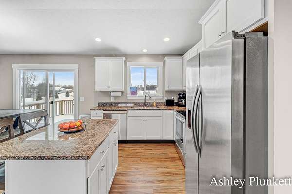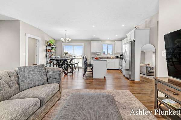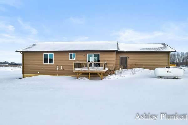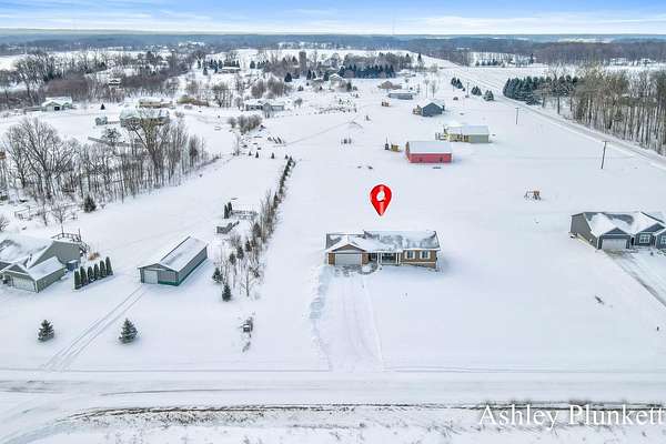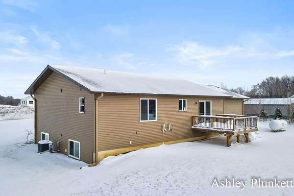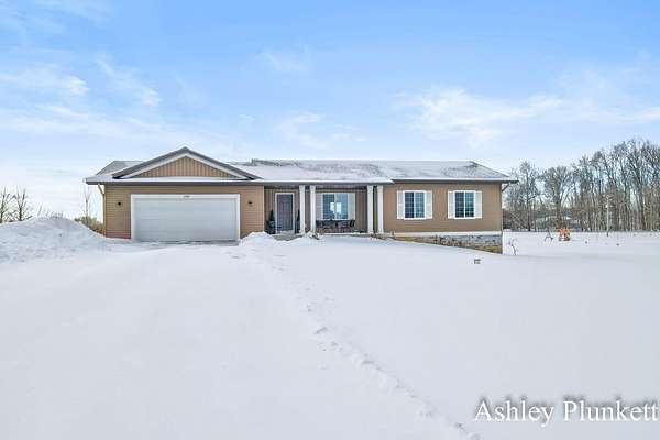Welcome to Middleville, where you'll find small town charm AND your newer constructed home! This bright, open-concept home features soaring cove ceilings with a seamless flow throughout the main floor. The dining area opens to a private deck overlooking 1.53 peaceful acres. The kitchen offers a center island, granite countertops, stainless steel appliances, and a pantry. The primary suite is a relaxing retreat with a walk-in closet and full bath featuring a 6-foot soaking tub. Two additional bedrooms and a second full bath provide flexible space for family, guests, or a home office. Additional highlights include front and rear entry closets, an attached two-stall garage, and a full unfinished daylight lower level with laundry, storage, utilities, and plumbing for a future bath. Here you can enjoy a welcoming community, an outdoor lifestyle along Thornapple River and a 25-minute commute to Grand Rapids, making this home an ideal place to truly put down your roots!