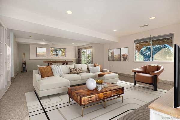 Experience the serenity of Colorado living in this beautifully appointed 4-bedroom, 3-bath ranch-style retreat, gracefully nestled among towering ponderosa pines on gently rolling hills. Offering the perfect blend of seclusion and convenience, this peaceful haven feels worlds away yet remains minutes from Southlands and other amenities. Step inside to discover a light-filled, open-concept interior with vaulted ceilings, a cozy wood-burning stove, and a skylight kitchen that radiates warmth and natural light. The kitchen is a culinary centerpiece -- featuring custom cabinetry with soft-close doors, granite countertops, stainless steel appliances (including a double oven and trash compactor), wine storage, and extended workspace for both daily living and entertaining. The expansive wraparound deck invites you to take in sweeping views of the hills and mountains -- an idyllic backdrop for outdoor gatherings around the built-in fire pit. The main level offers two bedrooms, including a spacious primary suite with ensuite bath, a secondary bedroom, powder room, and a charming cedar-lined hall closet. The walkout lower level offers two additional bedrooms, a full bathroom, recreation room, and laundry area -- all opening to a generous patio ideal for relaxing or hosting guests. Outdoors, the property shines with a flourishing raspberry patch, raised garden beds (rhubarb & onions thriving), blooming bushes, and perennials, all protected by deer fencing to preserve your private garden oasis. Additional highlights include RV parking (no HOA), a two-car attached garage, and plenty of space to unwind and explore. A detached workshop completes the offering -- fully equipped with electricity, a large workbench, commercial-grade shop vacuum, and separate storage room -- ideal for woodworking, hobbies, or creative pursuits. For those seeking modern comfort and peaceful country living, this exceptional property delivers an unmatched lifestyle surrounded by nature's beauty.