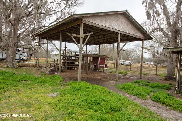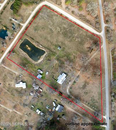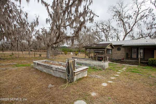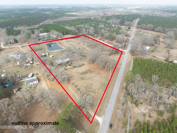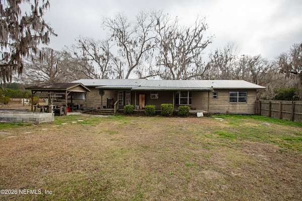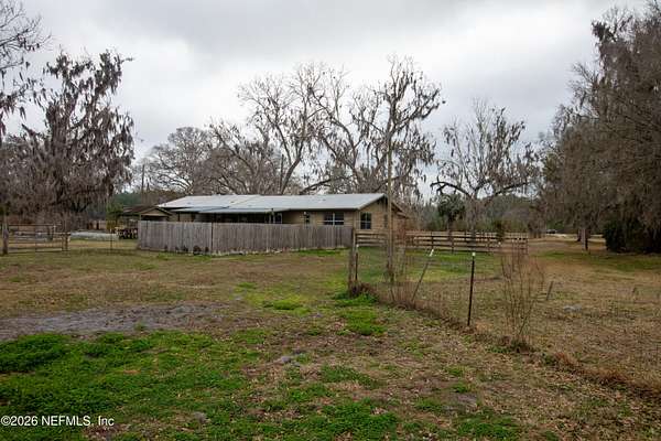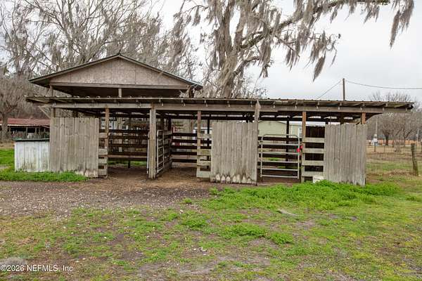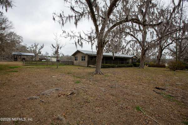 Bring your horses and farm animals to this 8+ acre mini ranch! Comfortable and updated home has cedar siding, metal roof, front and back covered porches. Large living/dining room with built in bookshelves. Breakfast nook in kitchen as well as an eat at counter. Custom hickory cabinets include a built in desk and china cabinet. There are three pastures, a pond, pole barn with three horse stalls plumbed for water, two chicken coops, carport that was used as a feed and hay shed, metal shed/workshop and lean-to. Pecan trees and raised garden beds. Covered concrete in back (gazebo) has electrical and could be used as a cook shed or outdoor kitchen. Large laundry room has plenty of storage. Updates include HVAC, stove (2023) and dishwasher (2024). Water heater replaced in 2020. Roof sealant to protect against tree debris applied in 2025. Don't miss this homestead waiting for new owners and animals!