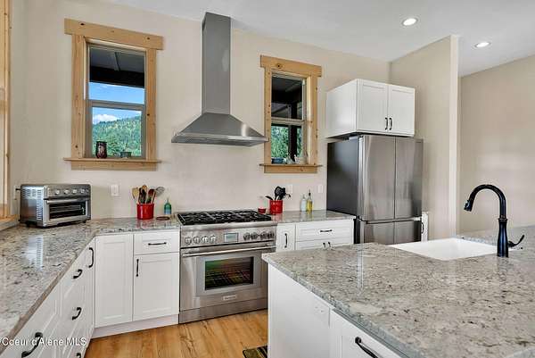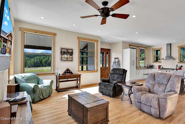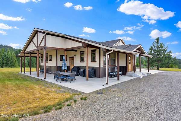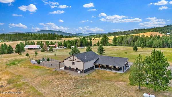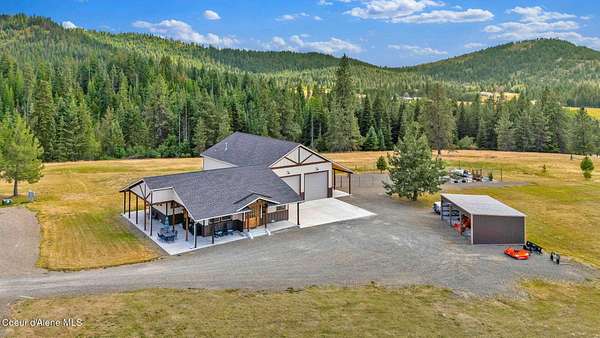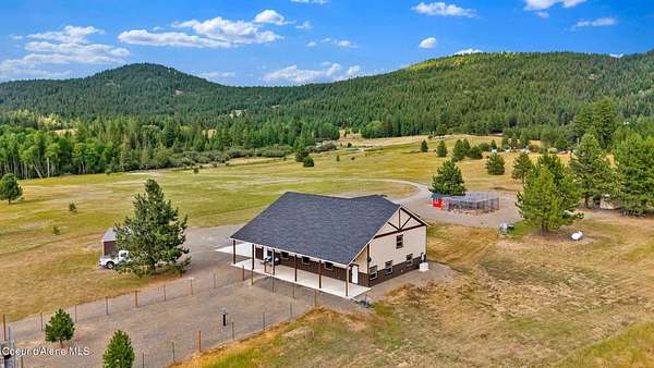 Discover this exceptional home & shop sitting on 20 acres that perfectly blends meadow & timber. The property features an open concept design with a dream kitchen including a primary suite with a large bathroom w/ heated floors walk-in shower & spacious closet. The wraparound porch offers stunning views of the surrounding natural beauty, making it ideal for morning coffee or evening relaxation. The incredible fully finished 2840 square foot heated shop provides endless possibilities offering thoughtfully designed spaces including 3 finished rooms for bedrooms, offices, crafting, etc. Other outbuildings include a 3 bay shed for tractor or equipment parking & a charming chicken coop ready to go. There's a fenced garden with raised beds, separate dog run, & RV hookup. This unique offering combines comfortable living with with practical amenities in a serene setting that's both private & accessible to amenites, recreation like Lake CDA & Bike Trail, & outdoor Idaho adventure!