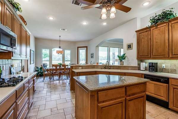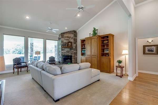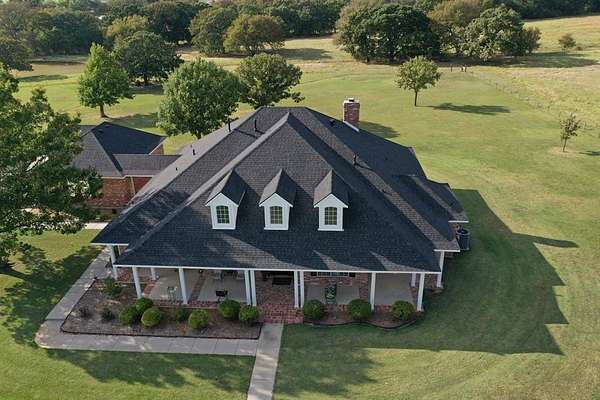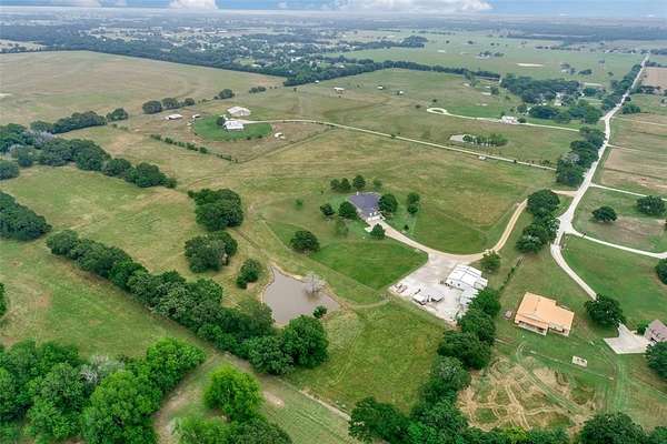 BEAUTIFUL horse country estate consisting of 17.5 acres featuring custom home, 3 outbuildings, gorgeous pond view, & pasture. This property has so much quiet country living to offer without sacrificing the convenience to city amenities & just minutes away from Lake Ray Roberts. The open floor plan allows for a warm, inviting atmosphere, perfect for entertaining. Custom molding, woodwork, built-ins, tray ceilings, plantation shutters, & attention to detail are shown throughout this beautiful, meticulously maintained home. The chef’s kitchen showcases custom wood cabinets, breakfast bar, island, double oven, & built-in refrigerator. The spacious primary suite boasts elegance & luxury with double vanities & walk-in closet in the ensuite bath. The office with private bath offers seamless remote work. A game room offers the versatility of being an extra bedroom. There are 3 outbuildings: an enclosed 2,285 sqft shop with concrete floor & 705 sqft livestock pen, both equipped with electricity & water, plus an open-sided building adds 600 sqft of usable storage for hay or equipment. Enjoy the picturesque views overlooking the expansive backyard, trees & pond. This is a rare find; one you will not want to miss!
