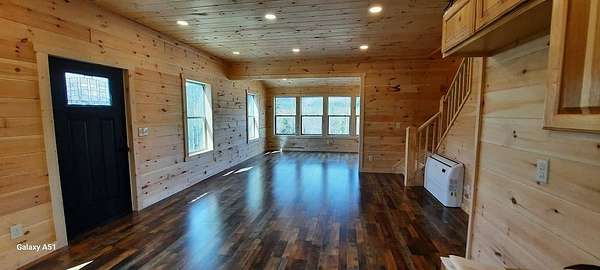 Escape to Your Own Private Paradise Newly built energy efficiency home. Discover the ultimate mountain lifestyle in this stunning 3-bedroom, 2.5-bath, log sided home, perfectly tucked away on 11.4 acres of surveyed private land. Designed for those who crave peace, privacy, and breathtaking scenery, this property seamlessly blends rustic charm with modern comfort.Main floor private bedroom and bath. Also a 1/2 bath with laundry off the kitchen. Upstairs is 2 more bedrooms and a full bath. Cozy & Open Living Step inside to a breathtaking open floor plan dominated by the warm aesthetic of knotty pine walls and ceilings. The living area, featuring high ceilings and expansive windows, is specifically oriented to frame panoramic mountain views, bringing the majesty of nature directly into your living space. The open concept flows perfectly into a well-appointed kitchen, ideal for entertaining friends and family. Nature-Focused Design Log Siding: Classic log siding exterior ensures the home blends beautifully with its wooded surroundings. Covered Deck: Relax and unwind on the covered deck-the perfect spot to take in the fresh mountain air, enjoy a morning coffee, or witness incredible sunsets regardless of the weather. Windows: Purposefully placed windows ensure that every room is filled with natural light, creating a serene, bright interior. Whether you are looking for a full-time residence, a vacation getaway, or an Air b+b opportunity, this home provides the "true mountain living" experience while offering room to roam and explore.Property is close to everything in the town and will be completed with a CO and more pictures within 14 days. Be the first to take a look.