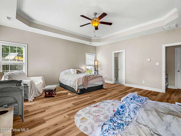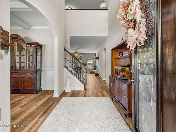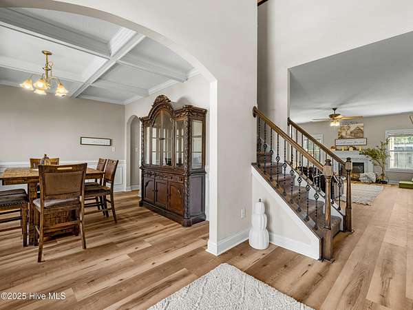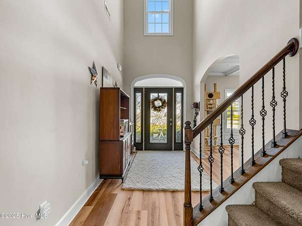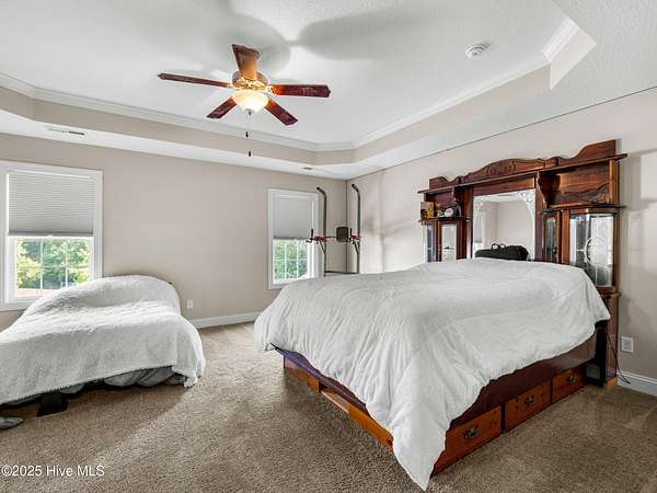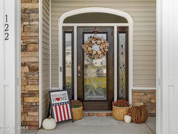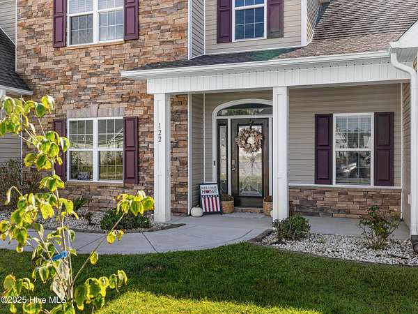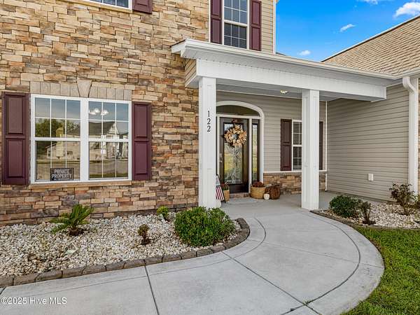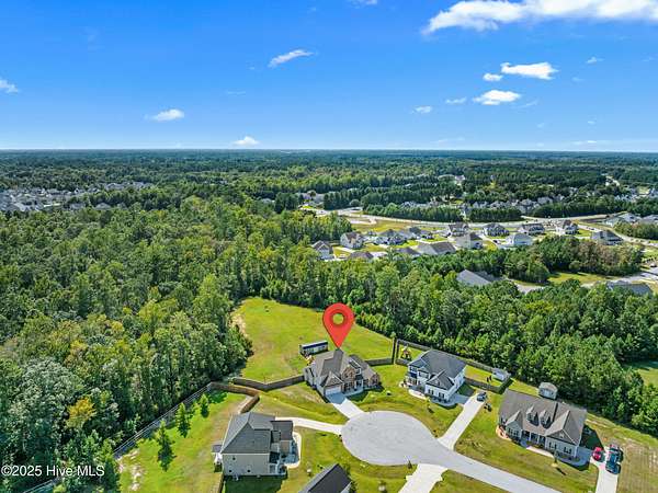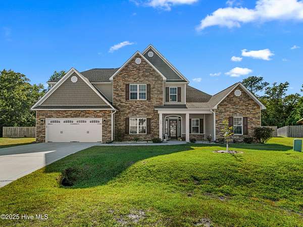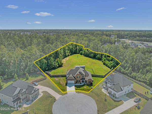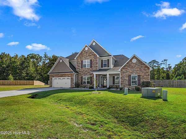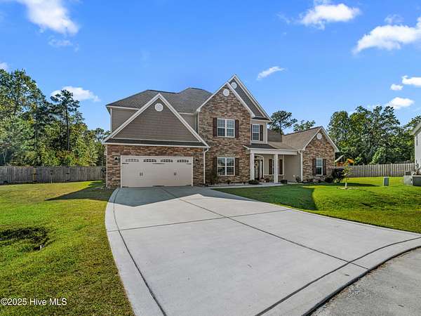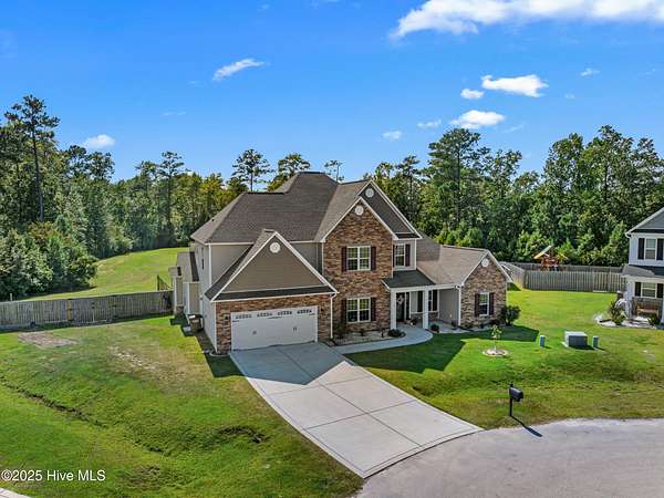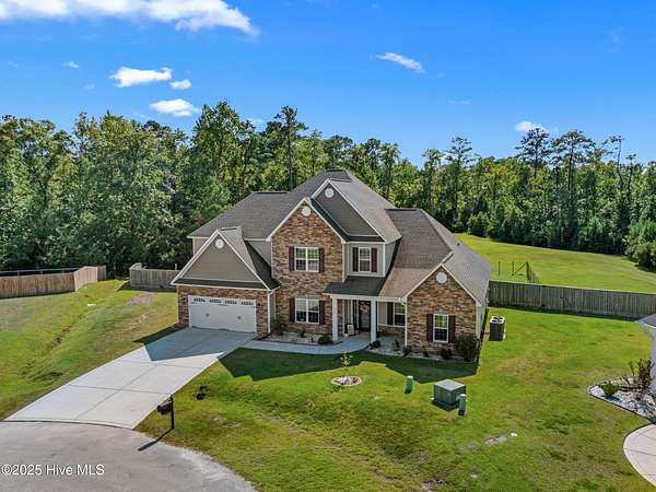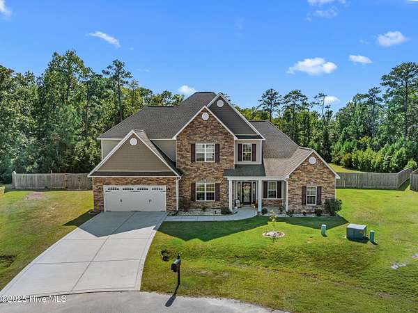 The dreamiest home in Onslow County is now available! If you have been looking for land and a house you can truly grow into, 122 Colonial Post is meant for you. Tucked away in Everett Place at Onslow Bay on a quiet cul-de-sac, this Avalon floor plan sits on an impressive 2.4 acres. Built and loved by only one owner since 2019, this home is loaded with upgrades. Step into the foyer with its grand, towering ceilings and prepare to be in awe. The kitchen is made for entertaining. It is open to both the dining area and the cozy Family Room with a large island, endless counter and cabinet space, and a double oven built right into the wall. Sunlight pours through the windows on every side, giving you gorgeous views of your acreage. The first floor master is oversized and complete with a spa-like bathroom and a closet so large you may have to buy more clothes just to fill it. Upstairs a spacious loft and second living room is surrounded by four additional bedrooms and two full bathrooms. Every bedroom has its own walk in closet. Homes like this do not come around often in Onslow County. Between the sheer size, the acreage, and the cul-de-sac setting, you will be hard pressed to find another property that compares. Do not debate it, call your agent and schedule a showing today.