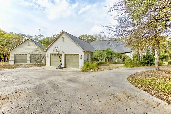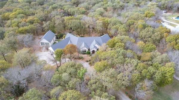 Beautiful home located in west Weatherford. Secluded property, heavily treed 2.7 acre lot offers privacy all around. Open concept floorplan with an additional room that can be used for a game room; additional family room; playroom; or even a crafts room & office! Large master suite offers a sitting area or desk space. Master bath has dual sinks, large garden tub & large walk-in shower. Open concept kitchen offers gas cooktop, farmers sink & small prep sink in island. Bedroom 2 has an en suite bathroom perfect for guests. Property is partially fenced, has a detached garage with upstairs office space & has plenty of room to make the backyard of your dreams, from gardening to outdoor kitchen & pool or most anything you can imagine. Home has been well maintained & is waiting for its next owner!