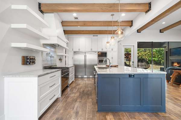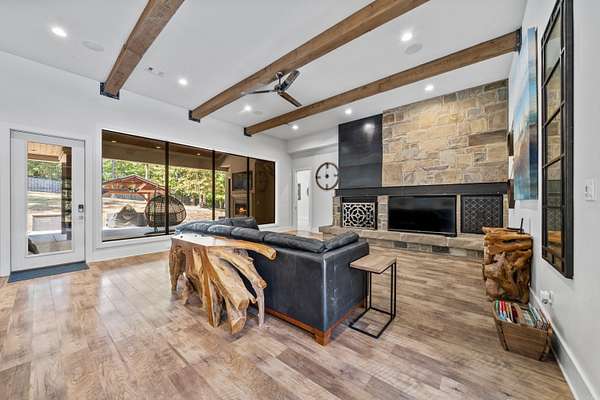 Refined Spaces, Relaxed Living! Set within an exclusive gated cul-de-sac of just three homes, this estate-style property, on almost 3 acres, delivers privacy, sophistication and comfort in equal measure. The main residence offers four bedrooms, three and a half baths, a dedicated office and plenty of flexible spaces including a media room and bonus room that easily adapt to your lifestyle. Blending open space with thoughtful design and seamless flow, the kitchen brings ease to everyday living and energy to every gathering. Step outside to the covered patio, where easy evenings by the fireplace meet the calming sound of the koi pond fountain. A porte-cochere connects the main home to the guest quarters above the second garage. With its own kitchenette, full bath, private bedroom and sitting area, it's perfect for visitors, extended family or an independent workspace. From the gated entry to the peaceful surroundings, this property balances privacy, elegance, and livability in a way that feels both refined and refreshingly relaxed.