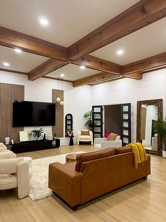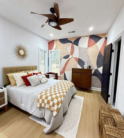 Discover this completely remodeled 5-bedroom, 4.5-bath home that blends modern comfort with striking mid-century modern design elements throughout. This beautiful home is located across the street from the highly acclaimed Nob North Golf Course in the sought after Highland Forest community where residents enjoy access to a clubhouse with pool, pickleball and tennis courts, a basketball court, a child's play area, a fishing pond and scenic walking trails. The interior of the home showcases stunning architectural and design style with a bright sunroom, contemporary finishes, and spacious open living areas. Step outside to your own covered outdoor kitchen and screened porch, perfect for entertaining. The property also includes a massive 20x40' storage building and is on a 4.6 acre lot.