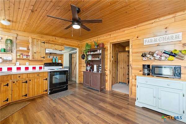 Charming 2 bedroom, 1 bathroom farm-style home situated on 4.74 acres, just 6 miles from Gatesville and approximately 45 minutes from Waco. This inviting property features an open-concept layout highlighted by beautiful pine ceilings throughout. A large living area provides plenty of space to gather and could easily be converted into a third bedroom if desired. The home also includes a spacious laundry and storage room at the back and a recently added deck that extends the living space outdoors, perfect for relaxing or entertaining. The acreage is thoughtfully set up for livestock or hobby farming with a fenced pasture near the front of the property that includes a barn, providing shade and shelter. An additional fenced area behind the home secures the back portion of the land, offering flexibility for animals or other uses. A separate storage shed adds to the property's utility. This property blends comfort and charm with practical features, offering the best of country living while remaining close to town conveniences.