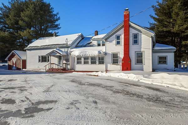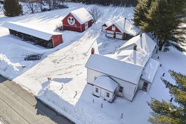 This is one of those properties that just rarely comes along...set on a rare 2.73-acre parcel-one of the largest pieces of land within walking distance to the Great Sacandaga Lake-this early-1800s farmhouse blends Adirondack charm with real-world opportunity. Zoned both residential and commercial, the possibilities here stretch far beyond a typical lake-area home. With over 2,000 square feet of living space, including 4+ bedrooms and a full first-floor bath and an attached one bedroom apartment with a private entrance, the possibilities are endless. Guest space, family quarters, rental income-it's all here- making it practical for everyday life, hosting a crowd, or multi-generational living. Exposed beams, built-ins, and generous storage give the home the kind of character you can't recreate, plus an additional area upstairs that is currently used as storage that could be additional bedrooms or living space. Step outside and the scale really reveals itself. Three enclosed garages, barns, sheds, and an 8-stall pole barn create serious storage capacity-perfect for vehicles, equipment, and toys of every kind. There's even an apple orchard out back, adding to the classic Adirondack feel. And here's the kicker: the property sits just mile from the Northville Marina, with plenty of room to store your boat... and your friends' boats -or potentially operate a boat storage side business. This kind of access and space near the lake is almost unheard of so whether you're dreaming of a homestead, a lake-area compound, a mixed-use venture, or something entirely your own, this property offers land, zoning, history, and location that simply can't be beat!