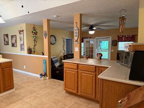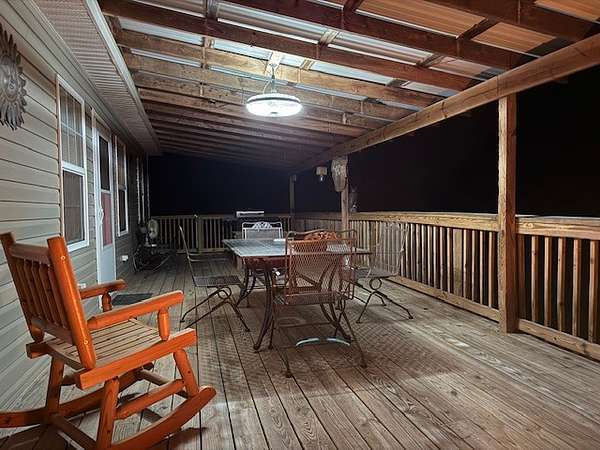The home features two bedrooms and two full bathrooms, fully furnished, along with a spacious kitchen ideal for gathering after a day on the water or exploring the outdoors. Step outside to enjoy the 40' x 12' covered back deck, perfect for relaxing, entertaining, or taking in the quiet surroundings. The front porch and side steps are finished with durable Trex boards for low-maintenance living. Outdoor functionality shines with a 12' x 22' carport ideal for an RV or boat, plus a 12' x 10' storage shed for tools and gear. The acreage includes two additional beautiful building sites, offering endless possibilities for expansion, guest cabins, or investment potential.