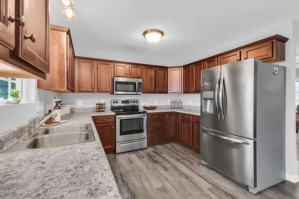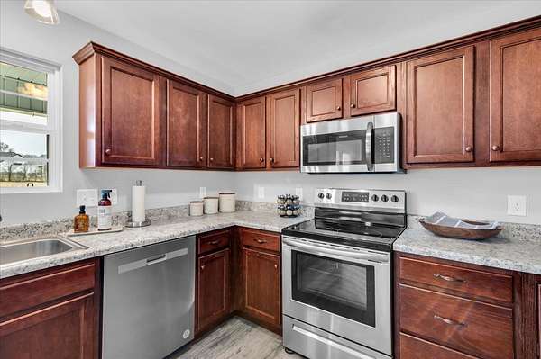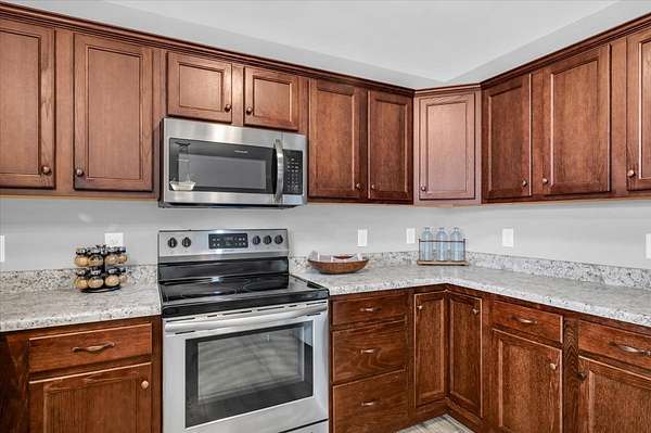- Dishwasher, Electric Oven, Electric Range, Microwave, Refrigerator, Stainless Steel Appliance(s)