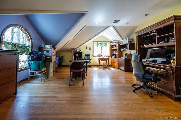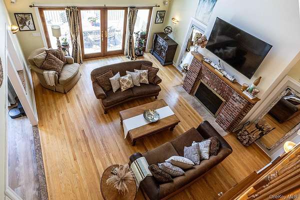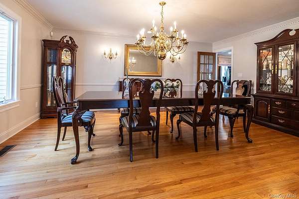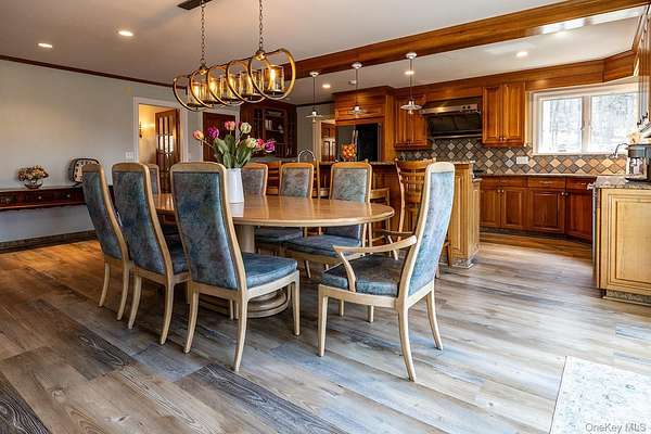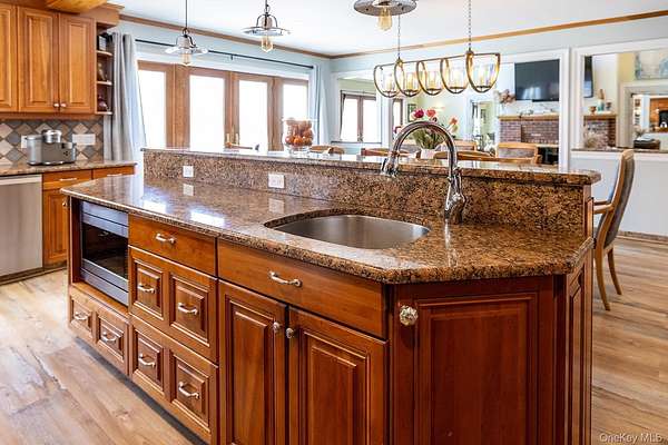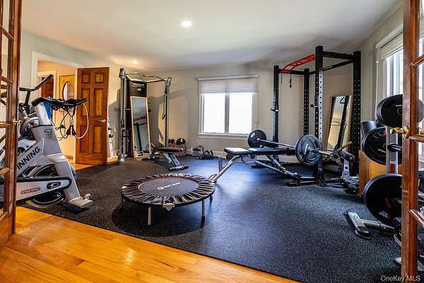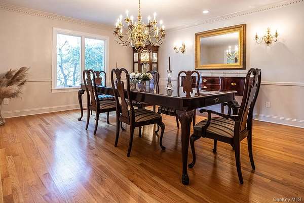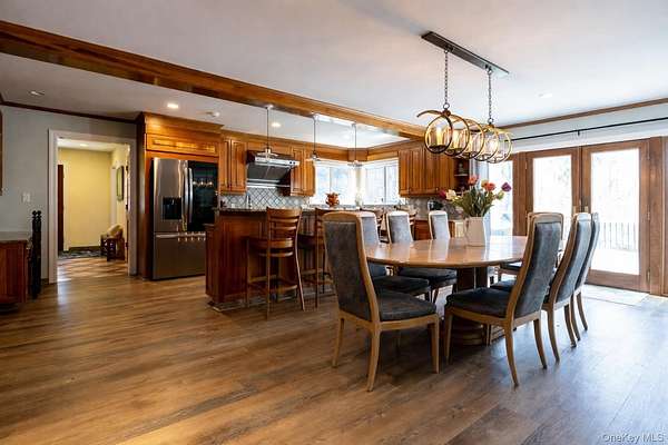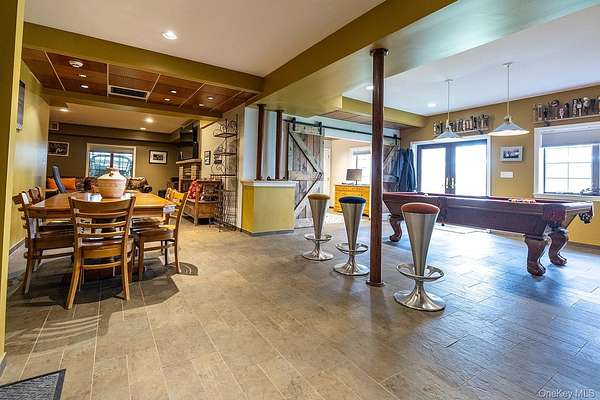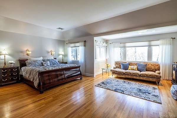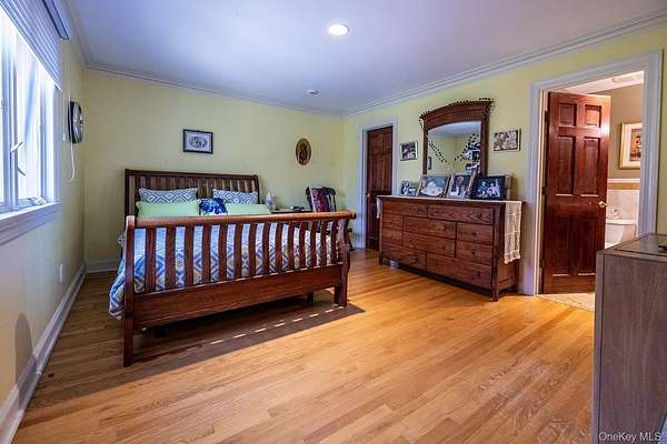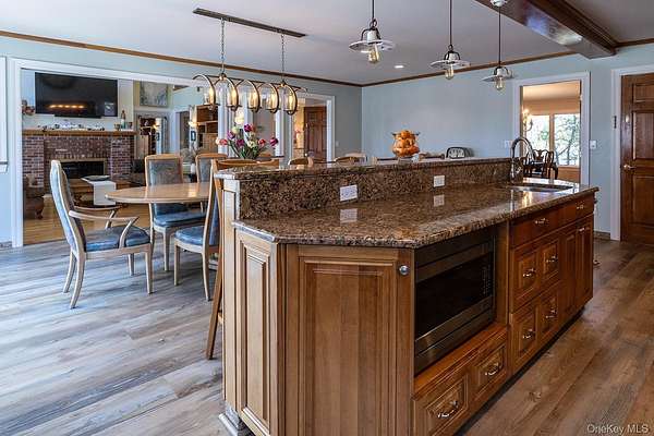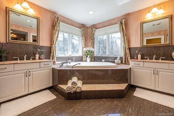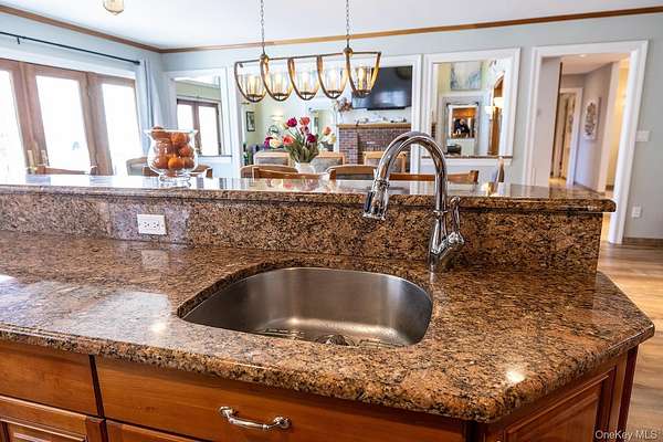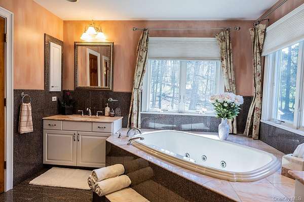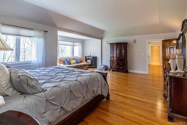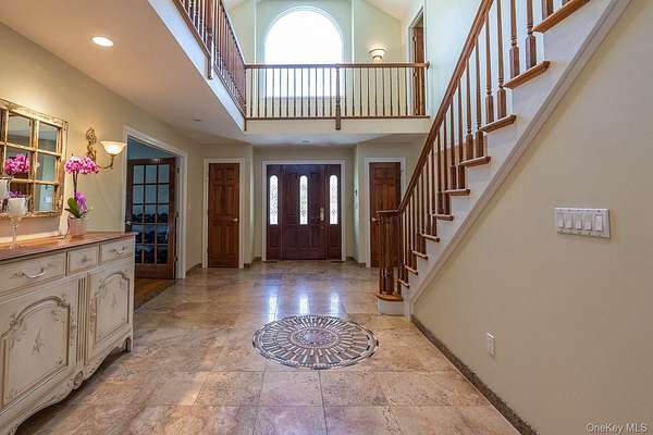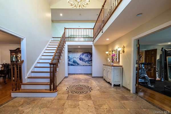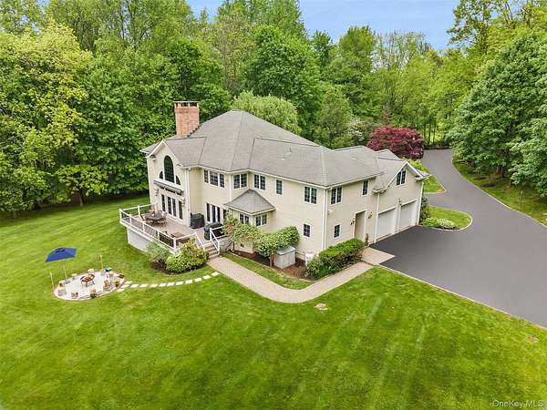 Custom-built residence blends timeless design, generous scale, and exceptional functionality on 2.4 usable acres in Bedford Corners, with the added benefit of Mount Kisco taxes and municipal services. Thoughtfully designed for both elegant entertaining and comfortable everyday living, this 4 bedroom (with bonus rooms that could be additional bedrooms), 5 bath home offers refined details throughout. A dramatic high ceiling 2-story foyer with sweeping staircase and wrap around catwalk introduces the home's gracious interior, flanked by home gym (or formal living) and dining rooms. The oversized chef's kitchen is designed for both function and gathering, featuring a six-burner commercial-grade gas stove top and electric oven combo with warming station, expansive center island with prep sink and breakfast bar, dedicated work station, walk-in pantry, mudroom entrance, laundry area, and extensive custom cabinetry with built-ins. The adjoining family room is anchored by a wood-burning fireplace and a striking two-story wall of windows that fills the space with natural light. Both Kitchen and Family room have french doors leading to the oversize deck. A flexible first-floor bedroom, den or office, ideal for guests or work-from-home needs, and an a-joining full bath complete the main level. The 2nd floor features an expansive primary suite/wing designed as a private retreat, offering a spacious bedroom with sitting area and tray ceiling, two walk-in closets, dressing area, private office or flex space, and a spa-like bath with radiant heated floors, soaking tub, and steam shower. A private staircase provides direct access to the kitchen level. Three additional bedrooms are well proportioned, including one en-suite bedroom with walk-in closet and custom built-ins, plus two bedrooms connected by a shared bath with separate water closet; one includes an additional walk-in closet with built-ins. The finished lower level provides approximately 1,200 square feet of additional living space, including a second family room with fireplace, game area, wet bar, wine cellar, full bath, a possible additional bedroom and abundant storage. Additional highlights include two fireplaces, wired sound system, circular hot water system, updated well pump and water filtration system, holding tank, 40-year roof, new deck, outdoor lighting, professionally landscaped grounds, and oversized attached two-car garage. The level backyard offers exceptional open space and flexibility for outdoor enjoyment. Conveniently located just minutes from town, shopping, dining, and train access. A MUST SEE!