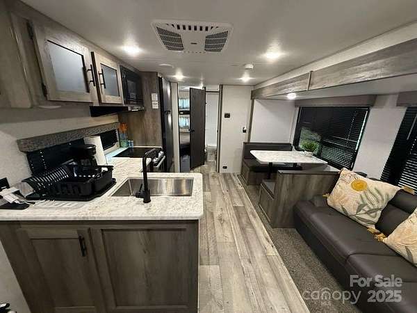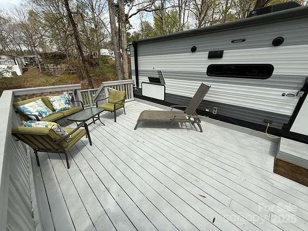 Badin Shores Resort is a private, gated community that includes access to a pool, lake, fishing piers, playgrounds and more. This lot includes a stationary fully furnished camper, a newly refinished deck with outdoor furniture, and an electric golf cart. Personal property will transfer with a bill of sale, but is included in the purchase price. The camper includes a queen size bed in a private room and twin beds off the kitchen/living area. TVs in both areas will convey. One bathroom includes a standing shower. Full kitchen with a seating area for four and a comfortable love seat that extends into an additional bed round out the amenities of the camper. All decor, furnishings, linens, televisions, and accessories within the property and on the deck will remain after sale, making this property an investor's dream. Close one day and list on Airbnb the next, but don't forget to enjoy this getaway yourselves.