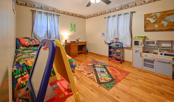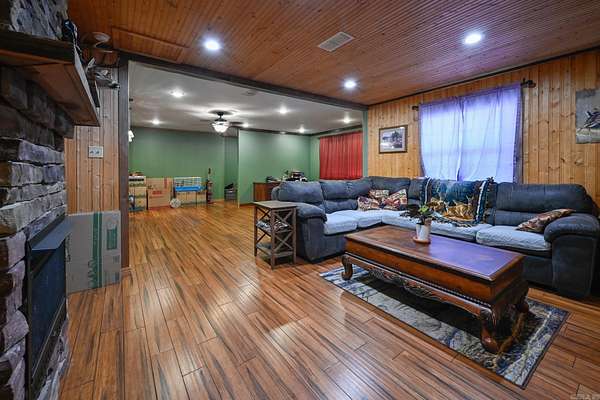 Welcome to your private retreat in Hatfield, Arkansas. This stunning 2.25-acre property offers a perfect blend of peaceful country living and fantastic amenities. The spacious 4-bedroom, 3-bathroom home features a cozy living room with a gas fireplace and a hidden safe room in the primary bedroom closet for peace of mind. The beautiful back porch is an entertainer's dream, complete with a grilling area, a hot tub, and an upstairs balcony with a scenic view of the large backyard. Overlooking a serene pond is a charming gazebo, creating a tranquil spot for relaxation. The home also has a one-car attached garage and a welcoming front porch with wood accents. Car enthusiasts and hobbyists will love the two versatile shops. The first is a spacious 24' x 30' shop, perfect for entertaining with its own wet bar, pool table, and half bathroom. The second is a dedicated 30' x 40' mechanics workshop. Both shops are equipped with pellet stoves, providing comfort year-round. This exceptional property truly has something for everyone.