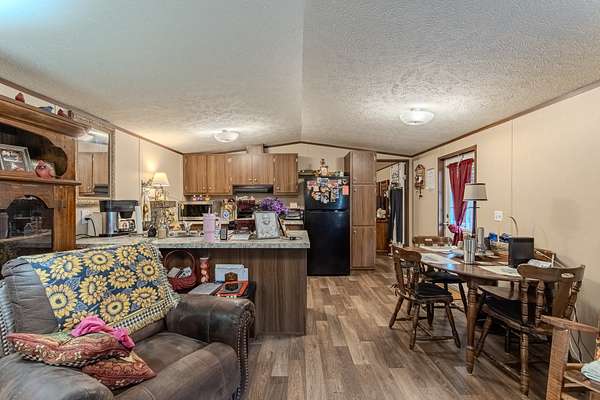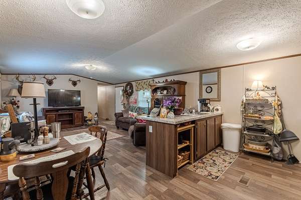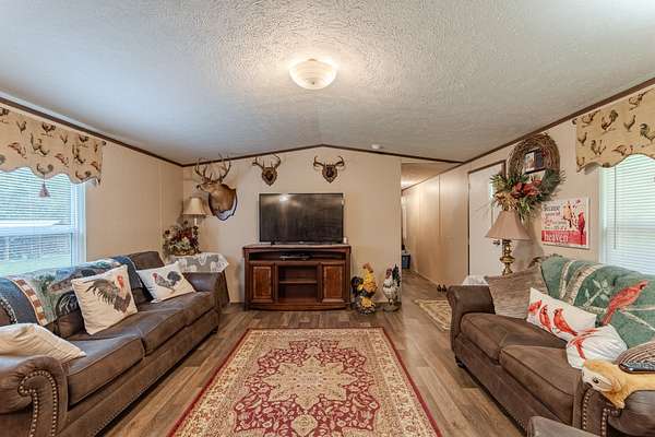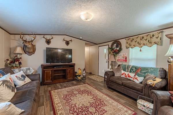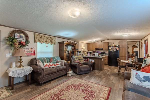 Est $784/moMotivated Seller! Well-maintained 2023 mobile home in the country on approximately 3 acres offering peace and privacy with a beautiful creek. This 3-bedroom, 2-bath home has a spacious living room with open floor plan eat- in kitchen and master suite. Storm shelter, 2 nice barns and fenced for your animals. No restrictions!