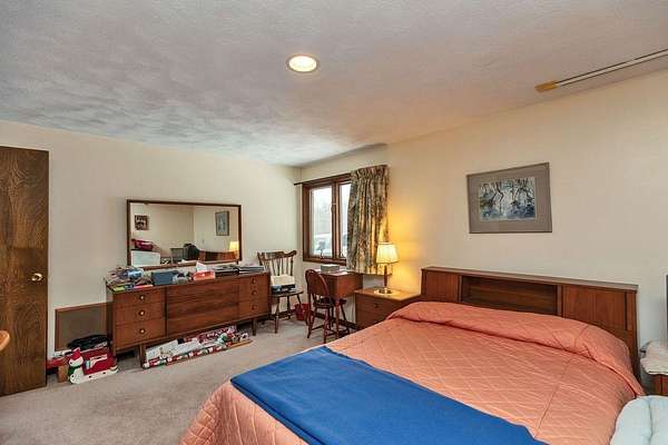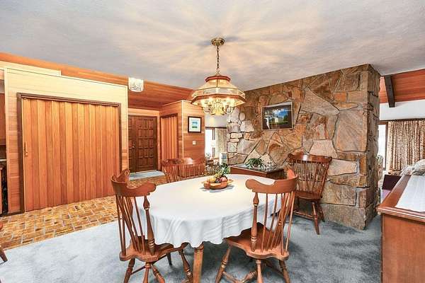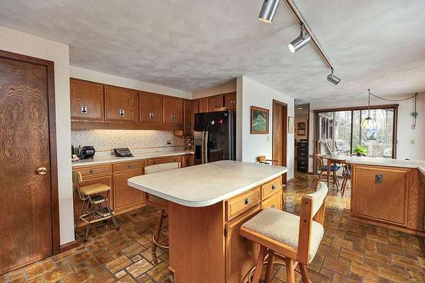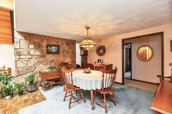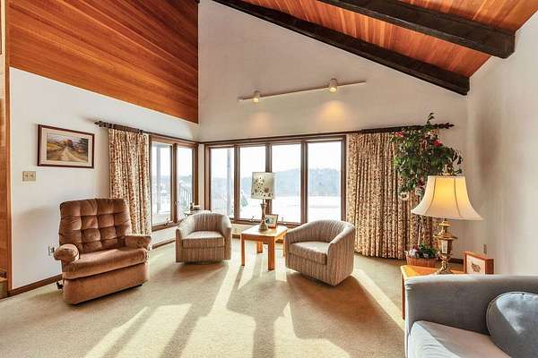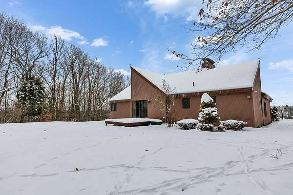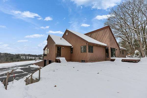 This custom-built 1978 contemporary sits atop pristine hilltop acres with sweeping southern views toward Mount Wachusett and the surrounding fields in the distance. Designed with timeless character, the home showcases soaring cedar cathedral ceilings with exposed beams, imported Italian tile, and a striking stone fireplace with a floated granite hearth. A spacious dining room off the foyer, two large skylights brighten the interior and provides an elegant setting for gatherings, followed by a wet bar that enhances the entertaining space even more. The kitchen offers a center island, abundant cabinets, an inviting eat-in area, a walk-in pantry, and Quaker-made cabinetry for both function and style. The primary suite features a large walk-in closet with a dressing area, and corner windows in every room bring in abundant natural light and frame the surrounding landscape. While the layout offers three bedrooms and three baths, all on one floor for convenient living. Comfort is ensured with central air and two wood stove hookups. Storage is something this house is not lacking, with thoughtful built-ins, a root cellar, and a two-car garage with an additional basement access door. Outside, a paved driveway completes the property's convenience. This rare offering combines custom craftsmanship, modern amenities, and tranquil surroundings in a truly unique setting.