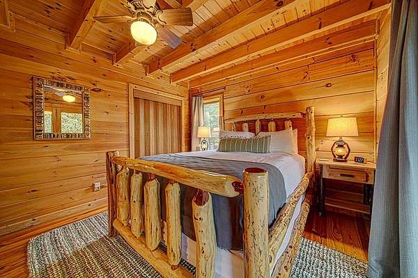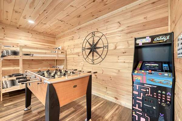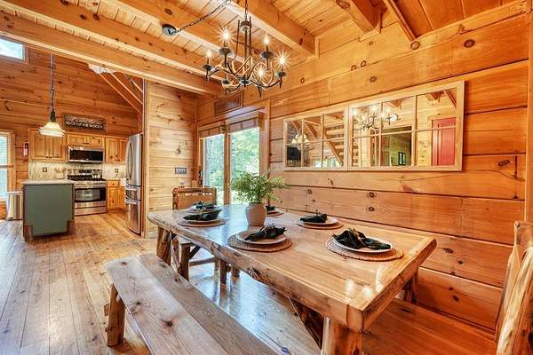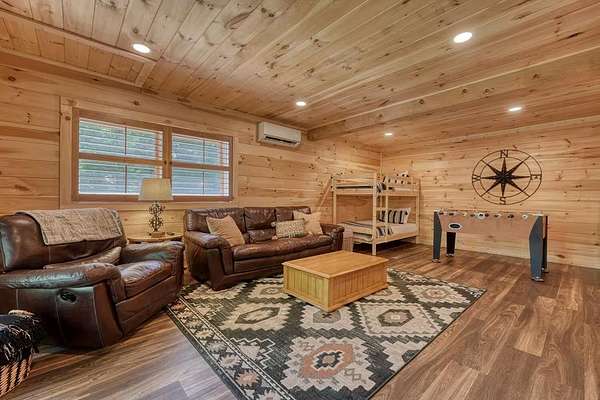 Escape to Sunrise Adventure, a professionally curated 3BR/3BA true log cabin that blends luxury with the beauty of the North Georgia mountains. Set on a sunny 1.42-acre lot with no HOA, this turnkey retreat offers 360-degree privacy, year-round mountain views, and an easy 15-minute drive to downtown Blairsville. Designed for comfort, the cabin features vaulted ceilings, all-wood interiors, leather furnishings, and two spacious living areas. It's also an established, fully managed, high-performing Airbnb that sleeps up to 10 guests. Enjoy mountain views from two covered decks and a large open front deck. The main level includes an open-concept kitchen, living, and dining area, plus a bedroom and full bath. The terrace level offers another bedroom, bunk beds, a game room with arcade and foosball, and direct access to the outdoor hot tub. The upper level is a private master suite with its own covered patio and a cozy bunk loft. Outdoor lovers will appreciate the cabin's proximity to the Appalachian Trail, Blood Mountain, Helton Creek Falls, Farm@180, Vogel State Park, Helen, and Hiawassee. You can even walk from the neighborhood directly onto national forest land. Modern conveniences include a whole-house generator, buried power lines and propane tank, upgraded septic system, and fiber-speed Wi-Fi. A detached workshop with shelving and worktables adds extra functionality. The paved driveway provides easy access within a quiet, gated community featuring a charming covered bridge. Sunrise Adventure delivers the perfect mix of remote mountain serenity and modern comfort — an ideal full-time home, vacation getaway, or investment property.
