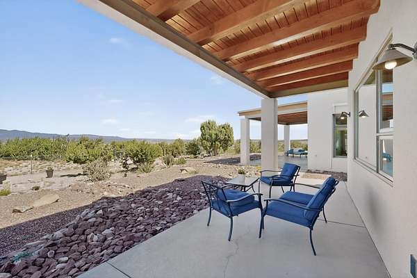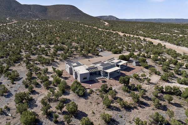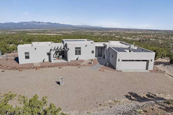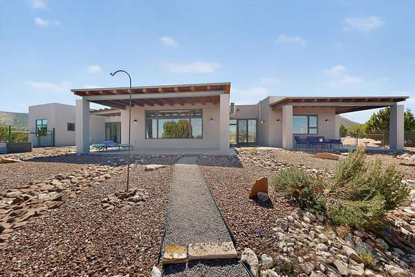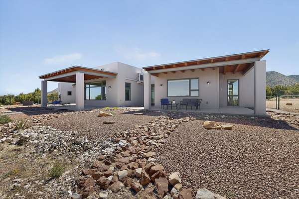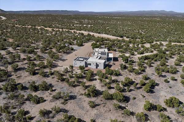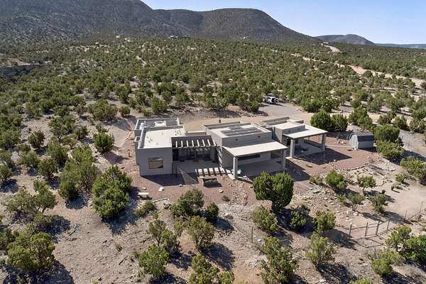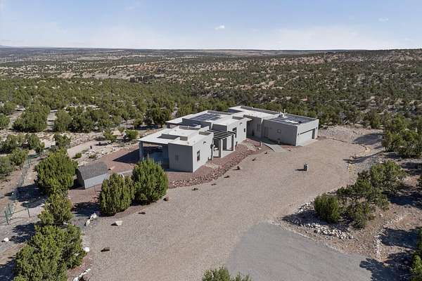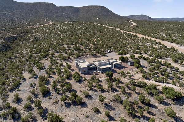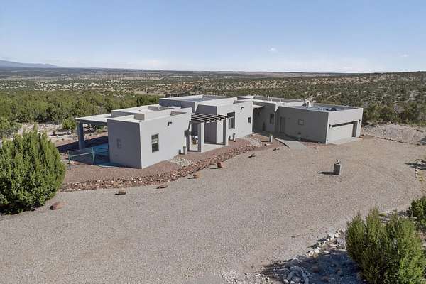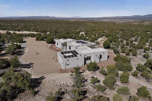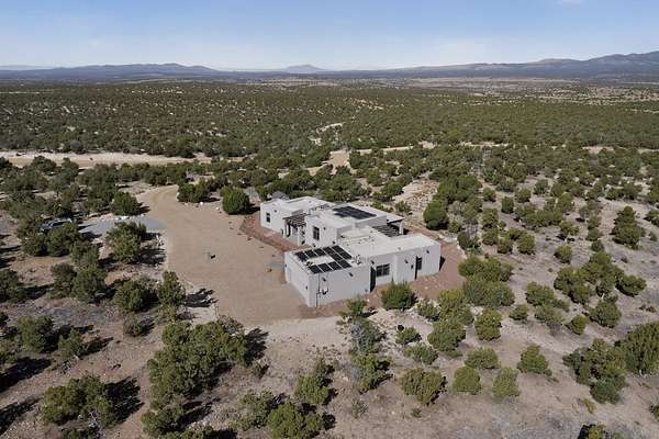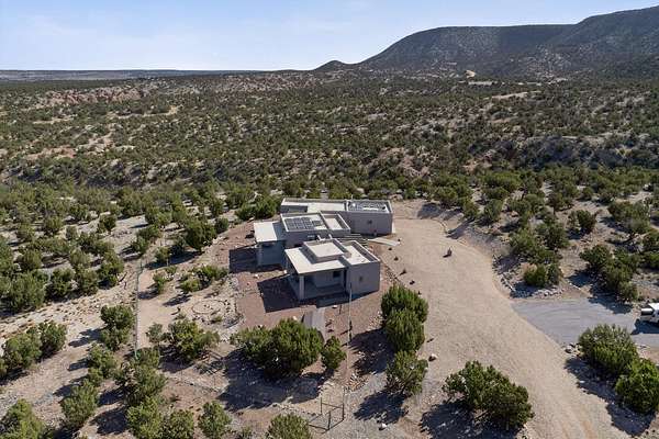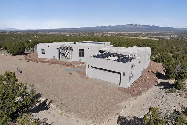 New Mexico's most coveted views can be found here in Deer Canyon Preserve. More than 11,000 acres of open space adorned with pinon-juniper woodlands. This gated community provides a peaceful and private living environment. The perfect harmony of modern style & mountain serenity, this 3 bed, 2 bath, almost 2,000 sq/ft home is situated on 20.83 acres with stunning panoramic views of the Manzano Mountains. Four sliding glass doors open to the main, beautiful, covered patio. Kitchen boasts custom maple cabinetry, stainless appliances, new granite countertops & backsplash. In-floor radiant heat & mini splits in every room for dialed in comfort. Concrete floors have recently been refinished. OWNED Whole-home RO and solar add to the value of this amazing home. Come see NM as it's meant to be.