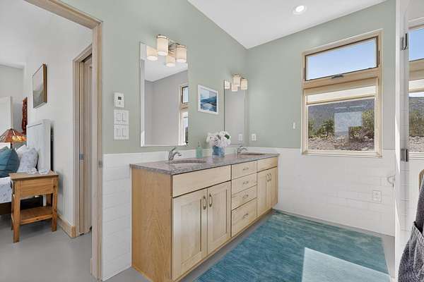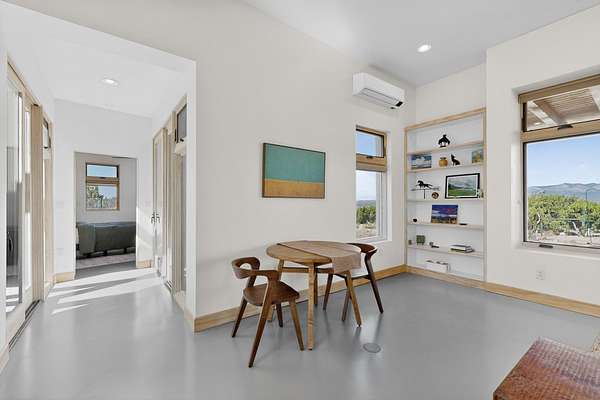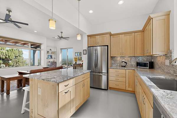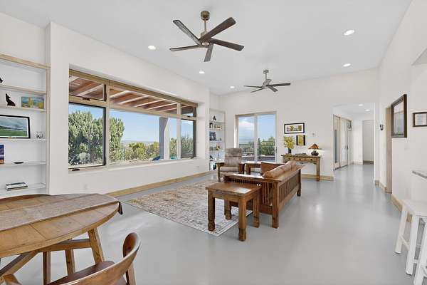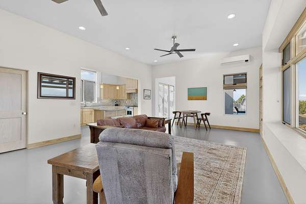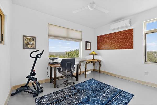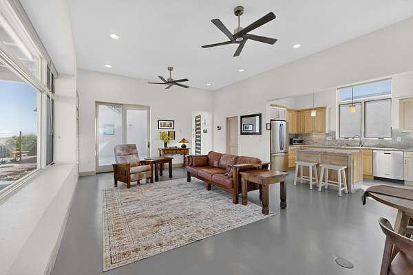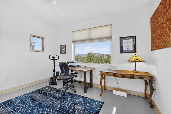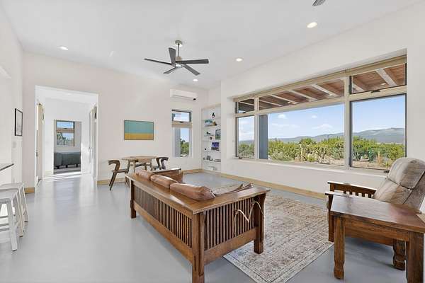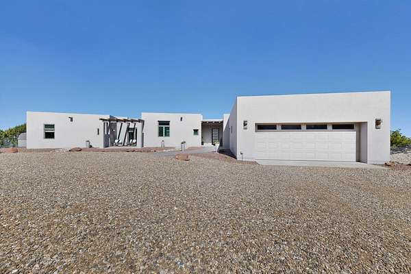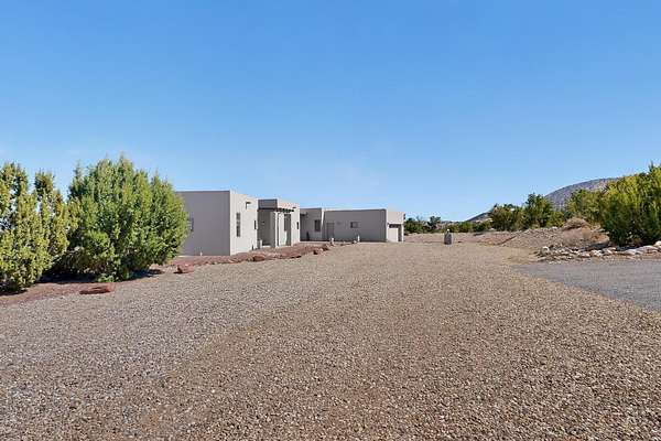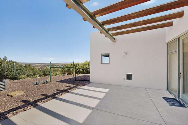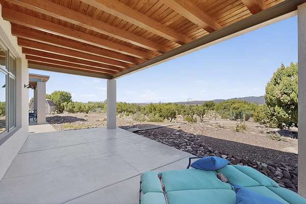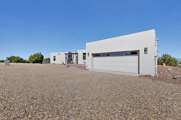 New Mexico's most coveted views can be found here in Deer Canyon Preserve. More than 11,000 acres of open space adorned with pinon-juniper woodlands. This gated community provides a peaceful and private living environment. The perfect harmony of modern style & mountain serenity, this 3 bed, 2 bath, almost 2,000 sq/ft home is situated on 20.83 acres with stunning panoramic views of the Manzano Mountains. Four sliding glass doors open to the main, beautiful, covered patio. Kitchen boasts custom maple cabinetry, stainless appliances, new granite countertops & backsplash. In-floor radiant heat & mini splits in every room for dialed in comfort. Concrete floors have recently been refinished. OWNED Whole-home RO and solar add to the value of this amazing home. Come see NM as it's meant to be.