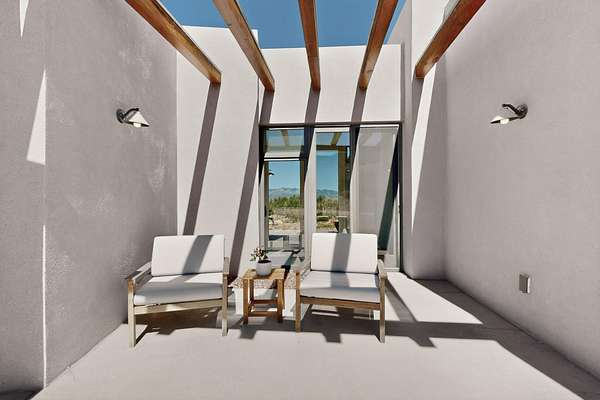 South from Mountainair on Hwy 55. At curve in road continue straight on B016 (dirt road) which turns into Deer Canyon Subdivision. Once inside the Deer Canyon Preserve, stay on Deer Canyon Trail about 3.5 miles. Just after Daklugie Trail, Victorio Trail will be to the right. Take a right on the SECOND Victorio Trail. Home will be on the right at the metal cactus. It is marked.