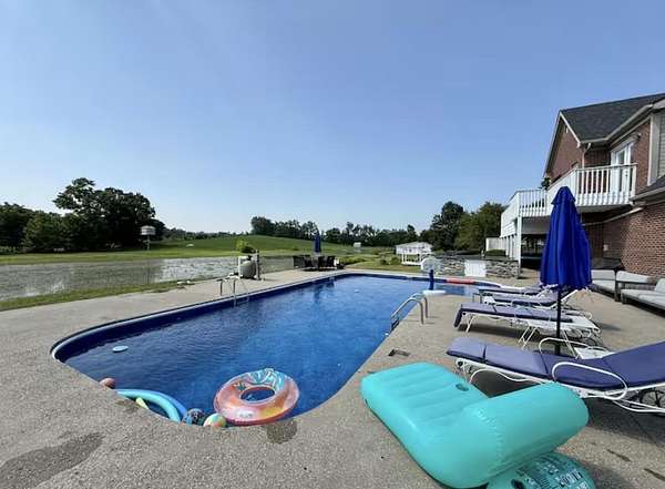Luxury Estate & Income-Producing Retreat in Georgetown, KY. Welcome to an extraordinary opportunity at 122 Wise Path, Georgetown, Kentucky-a stunning 4,352 sq ft estate situated on over 6 acres of beautifully landscaped land, offering unmatched privacy, resort-style amenities, and proven income potential. This open-concept home features 5 spacious bedrooms and 3.5 bathrooms, designed for both comfortable living and entertaining. The primary suite is a true retreat, complete with a luxurious soaking tub and walk-in shower. The finished basement continues the home's open-concept design, offering expansive space ideal for a game room, media area, or additional living and entertaining space. A flex room in the basement can easily be used as an additional bedroom, guest suite, home office, or gym, providing excellent versatility and value. Step outside and experience a private, resort-style oasis. Outdoor highlights include a 32,000-gallon swimming pool with a brand-new liner, hot tub, outdoor kitchen, top-deck putting green, and a tranquil koi pond with gazebo. Gather with friends and family around the outdoor fire pit, creating the perfect setting for evening relaxation, conversation, and year-round entertaining. As you enter the property, you're welcomed by a picturesque pond with a fountain, while the rear of the home opens to a breathtaking 2-acre lake with fountain and private dock-ideal for fishing, kayaking, or enjoying peaceful sunset views. Equestrian or hobby enthusiasts will appreciate the 1,878 sq ft outbuilding equipped with electric and water, featuring three horse stables and ample space for storage or additional uses. Recent updates include a new roof, repaved driveway, Brand new septic tank equipped with new leach lines and grinder, and a recently replaced HVAC/AC system, ensuring comfort, efficiency, and peace of mind for the next owner. Currently operating as a successful short-term rental for the past four years, this property has generated almost $360,000 in net income, making it an exceptional turnkey investment opportunity. The home will be sold fully furnished, including all furniture and appliances, allowing for immediate occupancy or continued rental operations. Whether you're seeking a luxury private residence, a private retreat, or a high-performing investment property, this one-of-a-kind estate truly offers it all.
