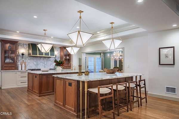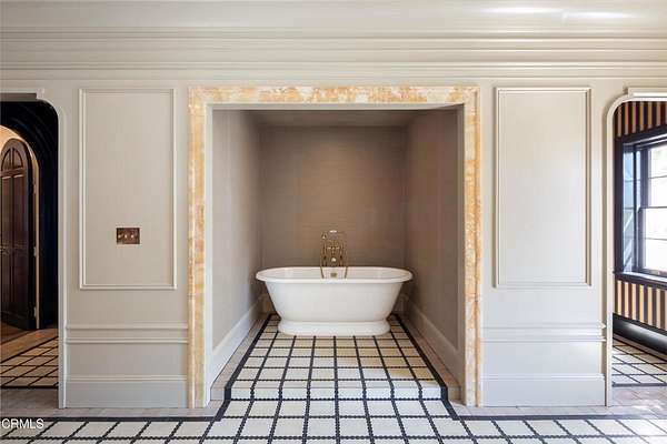 The finest work of renowned architect Reginald D. Johnson, this majestic 1928 Monterey Colonial estate is set on five acres in the heart of Pasadena.The Bauer/Cannell Estate & Gardens represents the union of architectural and horticultural artistry. .Owned by only two families over its 96-year history, the estate was designated in the City of Pasadena survey of Historic Gardens and is recognized as a contributing property in the proposed National Register Historic District. Most recently, the property was selected as the 2025 Pasadena Showcase House of Design in which 30 top designers remodeled and redesigned the estate for a month-long celebration of philanthropic events.The estate's grounds unfold like a private park, with sweeping lawns and paths through stately oaks, olive trees, and rose gardens. The main terrace overlooks a sparkling pool and pool house, while a canopy of trees opens to a north-south tennis court below. A sweeping circular drive leads to a motor court with a ten car garage and guest house. Inside, the residence offers 18 grandly scaled rooms, ten of which feature wood-burning fireplaces. Original architectural details have been beautifully restored alongside thoughtful modern updates. Steeped in history yet designed for gracious living, the Bauer/Cannell Estate & Gardens stands as a landmark of Pasadena's architectural and cultural heritage,a once-in-a-generation offering in one of the city's most distinguished neighborhoods.