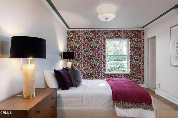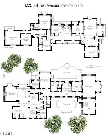 The finest work of renowned architect Reginald D. Johnson, this majestic 1928 Monterey Colonial estate is set on five acres in the heart of Pasadena.The Bauer/Cannell Estate & Gardens represents the union of architectural and horticultural artistry. .Owned by only two families over its 96-year history, the estate was designated in the City of Pasadena survey of Historic Gardens and is recognized as a contributing property in the proposed National Register Historic District. Most recently, the property was selected as the 2025 Pasadena Showcase House of Design in which 30 top designers remodeled and redesigned the estate for a month-long celebration of philanthropic events.The estate's grounds unfold like a private park, with sweeping lawns and paths through stately oaks, olive trees, and rose gardens. The main terrace overlooks a sparkling pool and pool house, while a canopy of trees opens to a north-south tennis court below. A sweeping circular drive leads to a motor court with a ten car garage and guest house. Inside, the residence offers 18 grandly scaled rooms, ten of which feature wood-burning fireplaces. Original architectural details have been beautifully restored alongside thoughtful modern updates. Steeped in history yet designed for gracious living, the Bauer/Cannell Estate & Gardens stands as a landmark of Pasadena's architectural and cultural heritage,a once-in-a-generation offering in one of the city's most distinguished neighborhoods.