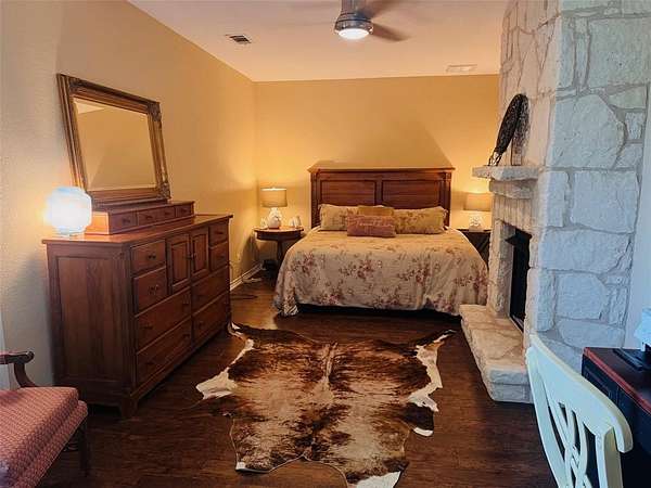 PRICE REDUCED AGAIN AND READY TO SELL!! Enjoy the freedom of country life. Arrive in style thru a wrought iron electric gate. Welcome your guests in the stone courtyard with a soothing water feature. Experience the perfect blend of luxury and rural charm with 3383 sq ft of living space in a quality construction stone home. This spacious open layout 3 BR 3.5 bath home is perfectly placed on 40 fully fenced acres. The elegant interior features easy care wood laminate flooring and tile. The kitchen has beautiful custom cabinetry, granite countertops, serving bar, gas island cooktop and 4 convection ovens for the home chef. Stone fireplace with stained custom cabinetry in the living area. Sunroom has a curved wall of glass windows. Custom cabinets and desk in the home office. Primary bedroom has a fireplace and a sitting area. Sewing or exercise room has built-ins and a desk. Laundry area with a sink and freezer space. Attached garage has a full bath and AC for use as a workshop, gym or extra living space. Foam insulation keeps the utility costs down. Living spaces flow out to a huge covered back patio with stone flooring. Wired for sound and TV. Perfect for entertaining. Relax around the stone fire pit to enjoy the beautiful view. Private pond for fishing or enjoying wildlife. Large metal barn has a full shop with heating and AC. It also includes living quarters that can be an apartment or guest suite complete with a sink, stove, washer and dryer. Ideal for hobbyists, home based business or multi-generational living. Sophisticated security system. RV ready with an RV pad and full hookups including direct sewer access. Dream horse property with 4 NRS horse stalls that can be removed, a chicken coop and a dedicated goat enclosure. Chain link fences surround the property. Improved pasture with income producing coastal hay and ag exemption to reduce the taxes. Close to city conveniences. Nestled among beautiful homes and acreage properties. MUST SEE TO APPRECIATE!!