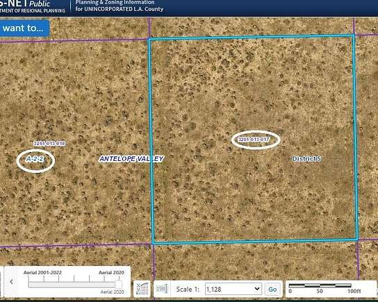 Est $112/moThe Owner will carry, Easy payments, Any Credit OK. Fully accessible lot per plot map Antelope acres area, very nice homes nearby 2+ - Acres of flat land on dirt road. Just 2k ft north of Ave D (Hwy 138) Nice area of west antelope area. Great Mtn Views. Please email me for more useful pictures. We have many others. Address is just an approximate
