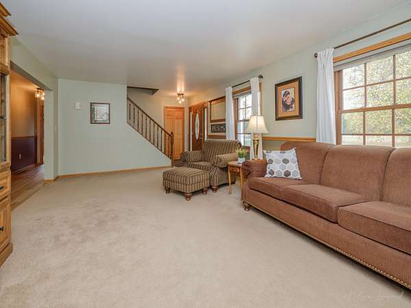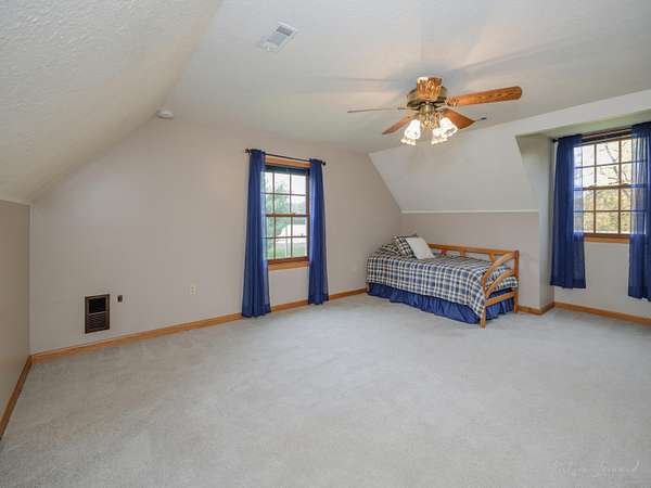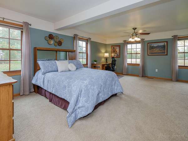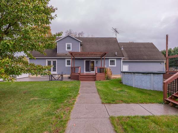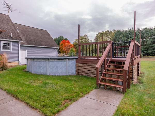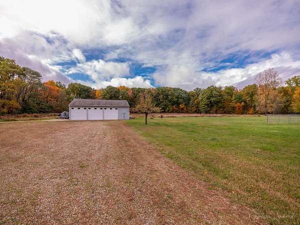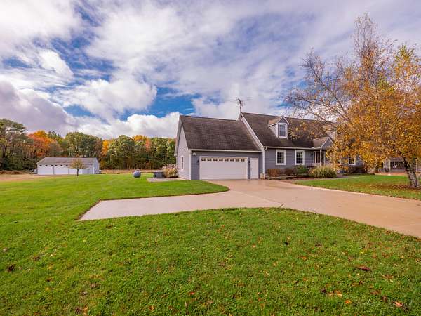 This well maintained Cape Cod home sits on 12 peaceful acres with Portage Creek frontage,offering space,comfort and charm inside and out.New exterior siding in 2020 and new windows in 2004.Whole house Briggs generator.The kitchen includes a pantry,plenty of cabinet storage ,a snack bar and all appliances.The informal dining area has room for a large family table and has French doors leading to the deck and patio overlooking the above ground pool. All rooms are very generous in size including the main floor 24x14 primary suite with french doors to the patio, a large walk in closet ,private bath with dual vanity, Jacuzzi tub and corner shower.The upper level has two large bedrooms both with walk in closets and the third full bath.The finished basement offers more living space with endless possibilities. The 30x40 pole barn has water and is insulated, heated and cooled. There is an 8x10 office with its own heat and air, a 10x30 loft storage area and three separate 10 ft overhead doors.
