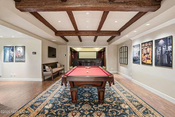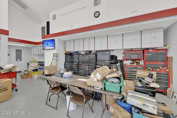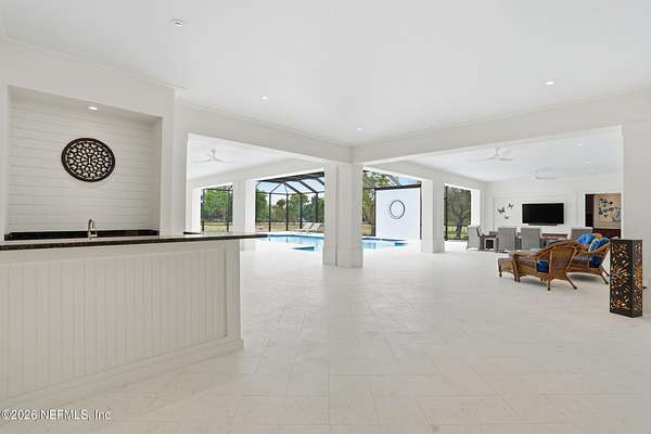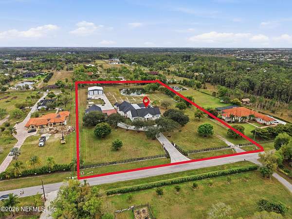 This exceptional estate offers a rare combination of luxury living, advanced construction with numerous appointments to detail, and unmatched versatility on a pristine 5-ACRE property with a pond (NO WETLANDS). Located just minutes from shopping, restaurants, and the international airport, you will have the feel of privacy and seclusion with everything you need at your fingertips. Designed for both everyday comfort and grand-scale entertainment, the home features a spectacular resort-style outdoor oasis (2025), complete with a HEATED, SALTWATER POOL, expansive 4,000 sq. ft. SCREENED LANAI, OUTDOOR KITCHEN, bar area, pool bath, and multiple covered seating spaces creating a true private retreat. Inside, refined craftsmanship and thoughtful design are showcased throughout. The gourmet kitchen and BUTLER PANTRY are equipped with premium high-end appliances, including a 48'' GAS DACOR COOKTOP with DOUBLE OVEN and built-in SUBZERO REFRIGERATOR, abundant storage, and generous prep . . . space, ideal for hosting and daily living. The luxurious primary suite offers a spa-like bath, custom closets, and modern finishes overlooking your outdoor oasis. Upstairs, you will find an entertainer's dream with a full-size HOME THEATRE- 133" screen, 8-person theatre seating, top of the line sound system & built-in projector. GAMING AREA with Pool Table, 2 TVs & video game area. Additional highlights include built-in wine nook with wine refrigerator, tech center, office area with conference space & home gym. Ideal for multi-generational living or income potential, the property includes a private suite with its own entrance, kitchen, living space, and laundry. Advanced smart-home technology by Crestron, Mid Atlantic, Lutron & Sonos include integrated sound systems, security, and lighting controls to enhance comfort and efficiency throughout. Car enthusiasts, business owners, or hobbyists will appreciate the impressive ACCESSORY BUILDINGS, including a high-clearance Bus (RV) BARN and a large WORKSHOP/GYM/OFFICE COMPLEX with vehicle lift, climate control, and additional office and conference space. Built with ThermaSteel SIP construction, the home offers superior energy efficiency, impact-rated features, whole-house RO water system, a backup generator, and multiple HVAC systems. Zoned AG - you could have a farm or run a business; the sky is truly the limit with gated access and the ability to subdivide approximately 1.5 acres. This one-of-a-kind property delivers an exceptional opportunity to own a property that truly has it all: luxury, flexibility, and a lifestyle without compromise.