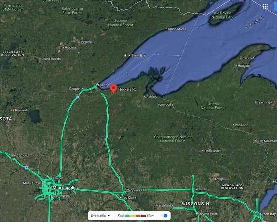 From Superior Wisconsin travel East on US-2, take right lane ramp exit to WI-13 S/Bayfield, , turn left travel 12.7 miles. Turn right on County Rd F ,Turn Left onto County Rd FF , Left onto Colby Road , Right onto Haukkila Road , travel to Fire# 12201 on the left( Gate and real estate sign )