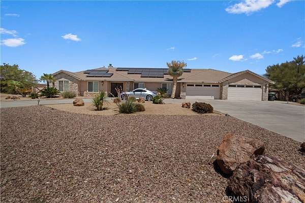 Decorative boulders compliment the fire pit near the pool. A pool house allows for the convenient enjoyment of being outdoors. This house has 2+ acres of land with gates and mostly block walls. This lovely home comes with a double electric oven, a gas stove, and a stainless steel fridge. The ample kitchen can be a delight for the chef of the house. Granite countertops and a large island provide convenience for preparing meals for everyone to enjoy. You will discover that the split floor plan is super convenient due to having 3 bedrooms and 2 baths on one side of the house and 2 bedrooms and a full bath on the other side. There are 3 access doors to the back yard. The roomy covered patio adds to the many possibilities. This home has a fully owned solar system with newer backup batteries. Make sure you come view this home and notice the value of living here.