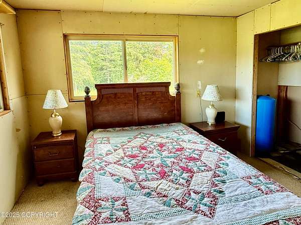 Est $1,115/moPartial ocean and Mountain View. Almost 8 acres of treed land and the convenience of highway access. Home is one level with oil stove and woodstove. Open concept one level, prefect for a small family or retired couple. Also a 448 sf. Cabin with heat, power and outhouse. Woodshed and big smokehouse as well. Deck does need some TLC. Septic is crib. Sale is as-is. Seller will finance with large down.