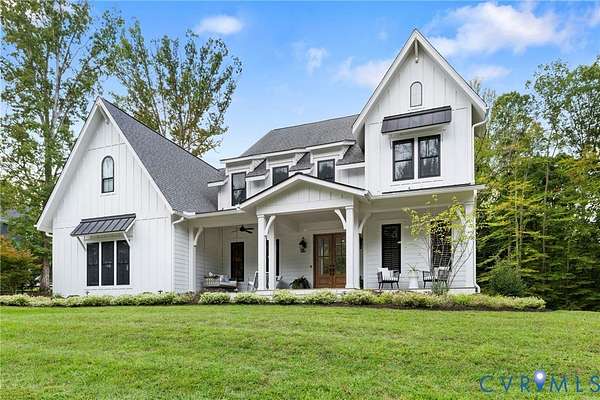 Spring welcomes you to this custom-designed farmhouse by Biringer Builders, a masterpiece of craftsmanship & design, blending elevated sophistication with everyday comfort. This home feels brand new! Situated off of historic Old Gun Road on 2 private acres, it offers the serenity of a retreat, minutes from conveniences. From the inviting front porch to the welcoming foyer, every detail has been thoughtfully curated. Soaring 10' ceilings, exquisite moldings & wide-plank wood floors establish an atmosphere of refinement. A paneled dining room & butlers pantry provides the perfect setting for gatherings, while the light-filled family room with beamed ceilings, fireplace, and built-ins flows seamlessly to a three-season screened porch with a stone fireplace, the perfect spot to relax. The chef's kitchen is a true showstopper, featuring a large quartz island with breakfast bar, floor-to-ceiling cabinetry, tiled backsplash, luxury appliances, and a sunlit dining area. A walk-in pantry, office/mudroom, powder room and laundry enhance main-level living. The primary suite is a luxurious retreat, wrapped in windows with refined crown molding. The spa-inspired bath offers a double vanity, walk-in shower, private water closet, linen storage, and a boutique-style walk-in dressing room with custom built-ins. Upstairs, a versatile loft connects four spacious bedrooms, including a Jack-and-Jill suite plus a second laundry room. An additional suite with full bath offers flexible space for a media room, office or guest accommodations with expansion potential in the wired storage area. The finished lower level provides abundant living space with a great/TV room, playroom, guest suite and direct walk-out to a private patio. An oversized two-car garage offers excellent storage. Outdoors, the property is designed for both recreation & retreat with a sports field and wooded trails and convenient second stone driveway. This remarkable residence offers a rare opportunity to enjoy elevated living in the heart of beautiful Midlothian.