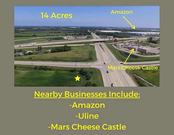 Est $34,192/mo14.28 acres parcel located at I94 and Hwy 142. This high profile parcel has over 775 feet of frontage on Hwy 142 and over 800 feet of frontage along the frontage rd. Easy access to the ON/OFF ramps of I94. The surrounding businesses consist of Amazon, Uline, Mars Cheese Castle and Microsoft. There are buildings on the property with no value.