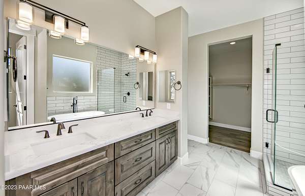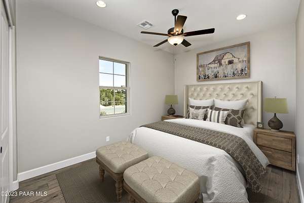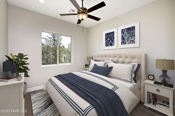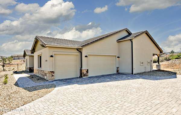 ONLY 10% DOWN AND $30K CREDIT TOWARD BUILDER OPTIONS. Whispering Canyon new construction to be built in Prescott! Natural setting, lush topography on 1.58 ac. Open great room design w/ 10' ceilings throughout. Standard features include tile & carpet in common area, carpet in bedrooms, windows galore, soffit ceiling, chef ready kitchen w/ island, granite & cabinet options, pantry, S/S appliances & access to covered back patio. Owner en suite has walk in shower, large closet & dual sink vanity. Two guest bedrooms, and large office/den (or 4th bedroom) Jack and Jill bath, bonus powder room for guest. Time to select builder options/design finishes. Covered paver patio & paver driveway standard. Build time 8-10 months.