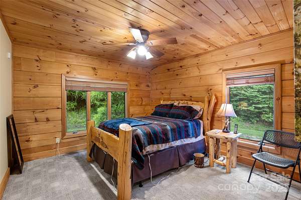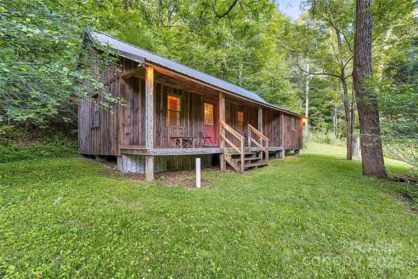 A rare and impressive legacy property of approximately 191 acres offering an extensive 3/4-mile (apx) of river frontage on Big Laurel Creek, a picturesque and stocked trout stream. This exceptional family compound or mountain cabin getaway is a true escape from the ordinary, combining rustic charm with modern conveniences. The centerpiece of the property is a magnificent log cabin, featuring timeless A-frame construction with oversized rooms designed for comfort and gathering. Step inside to an awe-inspiring open-concept great room with 19-foot ceilings and impressive post and beam construction. Expansive windows fill the space with natural light, offering stunning views of the surrounding forest and rushing creek below. The main level boasts a smart, split-bedroom design with three bedrooms and two full baths, while the lower level provides additional living space with a large family room, a guest bedroom, and an ensuite full bath. Designed for all-season enjoyment, the home is equipped with two furnaces, central air conditioning, and a propane furnace for cozy comfort. It features two stone fireplaces; the main level has a built-in woodstove insert, and the lower level has a gas log insert. The large, partially covered, full-length front deck and lower level fully covered deck is a perfect spot for morning coffee, evening campfires, or simply listening to the tranquil sounds of the rushing creek. You can rest assured knowing this property withstood the recent 100-year+ storm with no damage whatsoever. The property itself is a recreational paradise. It features extensive trails perfect for ATVs or hiking. A small cleared pasture area at the front of the site is ideal for a garden or family picnics. The land is south-facing and reaches a ridge top to the north, offering breathtaking views and plenty of potential for additional homesites. This property is comprised of 4 different tax parcels, offering a myriad of possibilities. In addition to the main cabin, there is a detached 1-bedroom, 1-bath guest cabin (approximately 655 sq. ft., not included in the primary square footage) and a large 3-car garage to store all your toys and equipment. The convenience of high-speed fiber internet ensures you can stay connected while enjoying mountain seclusion. With minimal zoning and no known private restrictions, this property offers incredible potential. Its location provides seclusion while remaining highly accessible: just 20 minutes from Wolf Laurel ski resort, 30 minutes from downtown Asheville, 15 minutes from Mars Hill, and 25 minutes from Weaverville. This is an unparalleled opportunity you won't want to miss. Can be purchased mostly furnished, if desired and could make for a great short term vacation rental when out of town! Please see video link: