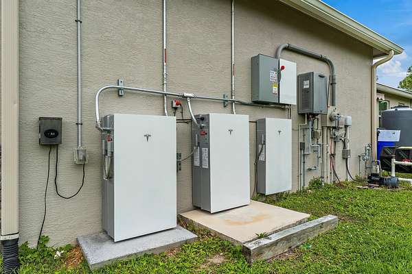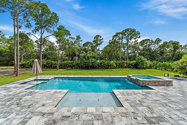 Jupiter Farms home built in 2021 with over $200k of upgrades in 2023-2024 including your very own pickleball/basketball court! New driveway, new fencing, Tesla solar + Powerwalls, and new automatic shades for the back porch are just a couple of examples of recent improvements. Take advantage of 1.5 acres of solitude while still being minutes to I-95 and Juno Beach. Offering 4 bedrooms plus a den, 4.5 bathrooms, and 3,051 sq. ft. under air (4,415 total), this home blends clean architectural design with modern comfort. The open layout features wide-plank laminate hardwood flooring, high ceilings, and natural light throughout. The kitchen shines with premium appliances, upgraded lighting, and expansive counters, perfect for entertaining. The primary suite offers a spa-style bath, custom finishes, and walk-in closets. The backyard delivers true Florida living with a heated saltwater pool and spa (both app-controlled), roll-down screens, privacy hedging, and a garden or animal pen area. Energy efficiency meets peace of mind with solar panels, Tesla Powerwalls, impact windows, and full smart-home integration including Nest, Ring, Lorex, and keypad entry. Additional highlights include a 1,000-gallon propane tank, reverse osmosis system, app-controlled irrigation (2024), and newer washer/dryer.
