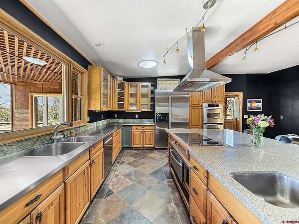 Liz Heidrick, Needlerock Mountain Realty and Land, LLC, 970-234-5344, liz.needlerock@gmail.com, http://www.needlerockrealty.com/: Exceptional Private Multi-Dwelling Retreat in Western Colorado's North Fork Valley. Solar is outstanding and this place pays for itself! Spring Water and Irrigation! Million Dollar views and out of this world landscaping. Discover a rare opportunity to own your own secluded sanctuary with this exceptional multi-dwelling property. Nestled on 10 acres of lush land, this charming house with a guest house and two full RV hook-ups offers complete privacy and tranquility, all bordered by 140 acres protected within a conservation easement on neighboring property--ensuring your peaceful retreat remains untouched for generations to come. The 10 acres themselves are not in a conservation easement and have no deed restrictions, allowing you to enjoy unmatched flexibility and freedom while benefiting from the privacy provided by the surrounding protected land. The property also includes a ready-to-build third home site, complete with water, power, and septic connections--ideal for expanding your vision of this retreat.This property is a unique combination of modern sustainability with boundless potential. The solar power system, boasting a two-meter setup and a capacity of 50 kilowatts of power, connects one meter to the Main House (3800 sq. ft.) and the other to a commercial kitchen/shop/garage. Imagine never paying a power bill again. Designed with self-sustainability in mind, the commercial kitchen is equipped for food production and storage, complete with freeze-drying equipment, a fruit press, and distillation equipment for essential oil production--ideal for small business ventures or personal use.The Additional Guest House (400 sq. ft.), situated as a private and separate living space, offers versatile opportunities--ideal for hosting family, guests, or generating rental income.Key highlights include:Versatility: This property supports a variety of lifestyles, with abundant domestic water taps and irrigation shares, you can envision an eco-living haven, multi-family living, or rental/retreat opportunities.Sustainability and Self-Sufficiency: The lush grounds host organic fruit trees (apple, pear, peach, nectarine, apricot, cherry, mulberry), berry bushes, wine grapes, and a 30'x50' greenhouse with power and water. Mature flower, herb, and vegetable gardens thrive in the rich soil under the shade of a canopy of gorgeous trees.Lifestyle Opportunities: Whether you're dreaming of family gatherings, eco-tourism ventures, or simply relaxing in an inspiring natural setting, this property delivers. The open-concept main house, with its cozy sitting nooks and stylish slate tile floors, is ideal for entertaining or unwinding, while the expansive kitchen--with stainless steel appliances, granite countertops, and a professional-grade range hood--makes every culinary endeavor a joy.The property's location in the scenic North Fork Valley adds even more charm, offering breathtaking views, access to nature trails, and a vibrant community that values sustainable living and creativity.Don't miss this rare chance to own a truly exceptional piece of paradise--a multi-family or generational dream come true!