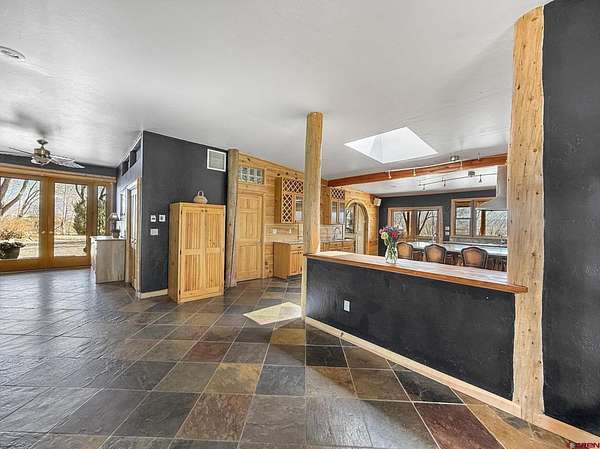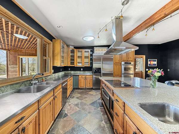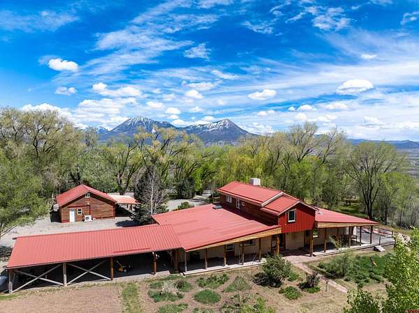 This secluded 10-acre property offers a rare blend of privacy, sustainability, and versatility. The retreat includes a spacious 3,800 sq. ft. main home, a 400 sq. ft. guest house, and two full RV hook-ups. A third homesite is ready to build with water, power, and septic connections already in place, making it ideal for multi-family living, rental opportunities, or retreat expansion. Surrounded on three sides by 140 acres of conservation easement land (not included with this property), you'll enjoy lasting seclusion and peace, while your 10 acres remain free of deed restrictions, giving you unmatched flexibility. Designed with modern sustainability in mind, the property features an impressive 50 kW solar system with two meters-one serving the main home and the other powering the large commercial kitchen/shop/garage. This system virtually eliminates power bills and supports a truly self-sufficient lifestyle. The commercial kitchen is fully equipped for food production and processing, including freeze-drying equipment, a fruit press, and distillation equipment for essential oil production-perfect for homesteading, small business ventures, or creative projects. The grounds are equally remarkable, with abundant domestic water taps and senior irrigation shares. A wide variety of organic fruit trees (apple, pear, peach, nectarine, apricot, cherry, mulberry), berry bushes, and wine grapes thrive here. A 30'x50' greenhouse with water and power expands your growing season, while mature gardens, herbs, flowers, and vegetables flourish under the shade of beautiful established trees. The main home is designed for both comfort and entertaining, featuring an open-concept layout with slate tile floors, cozy sitting areas, and an expansive kitchen with stainless steel appliances, granite countertops, and a professional-grade range hood. The separate guest house offers privacy and versatility, ideal for extended family, visitors, or rental income. All of this is set in the heart of the scenic North Fork Valley, known for its breathtaking mountain views, abundant wildlife, access to trails, and a vibrant community centered on creativity and sustainable living. Million-dollar views, unmatched privacy, and exceptional versatility make this a truly one-of-a-kind opportunity-whether you envision multi-family living, an income-producing retreat, or your own self-sustaining paradise.