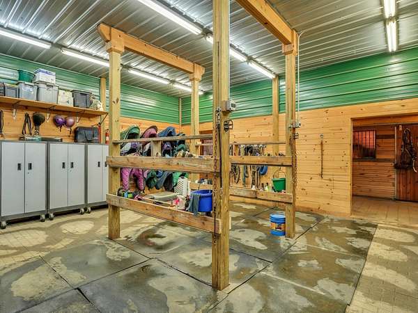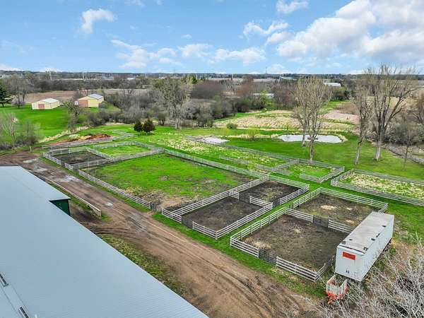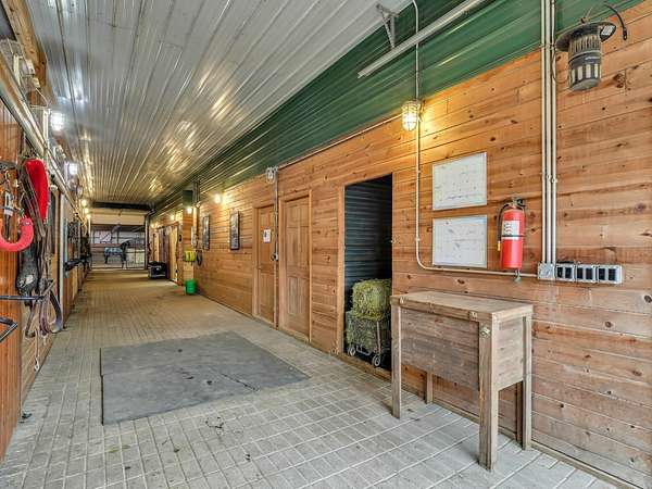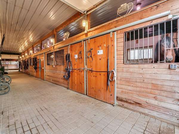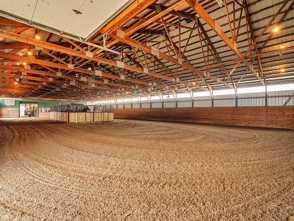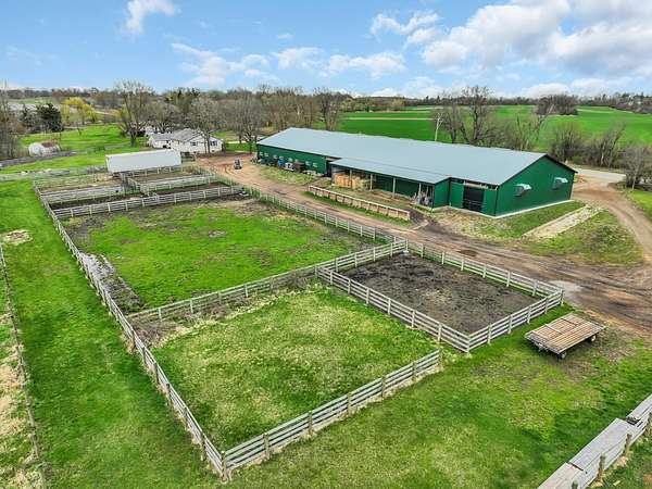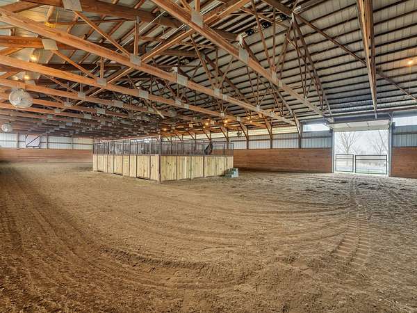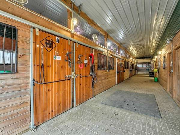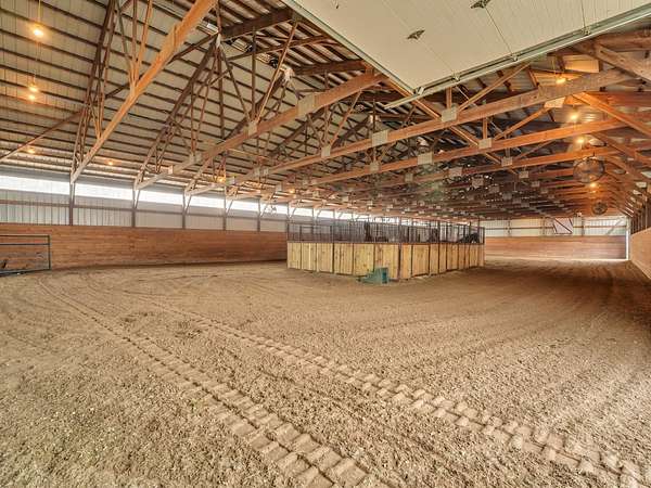 YOUR DREAM HORSE BARN AWAITS YOU! 16 stalls, INDOOR ARENA, Grooming/Tacking/Vet Care room, FIRE-PROOFED hay storage, commercial VENTILATION fans, 2 BRICK aisles, INDOOR WASH Rack, and much, much more! The barn is well insulated to stay warm in the cold months and well ventilated to stay cool in the warmer months. Viewing room to the Indoor Arena, Feed Room, Entry Room, and Kitchen/Laundry Room are also in the barn. The OWNED, NOT RENTED, SOLAR PANELS keep the utility costs to a minimum! (Located on the barn roof) Updated home that is truly much bigger than it looks from the outside! 3 bedrooms, 1 full bath (another full bath in the barn!) and a very useable and spacious basement! Detached 2 car garage. 12 Horse Paddocks (totaling 38,688 sq ft) plus outdoor riding space. Outdoor riding space can be turned into 6 more small paddocks (13,659 sq ft). There is a loft above the stalls in the barn that is already framed. This is truly a well thought out and efficient equine facility. Perfect to jump right in and operate your business while you live there. Also would make an AMAZING EQUINE VETERINARY Facility.