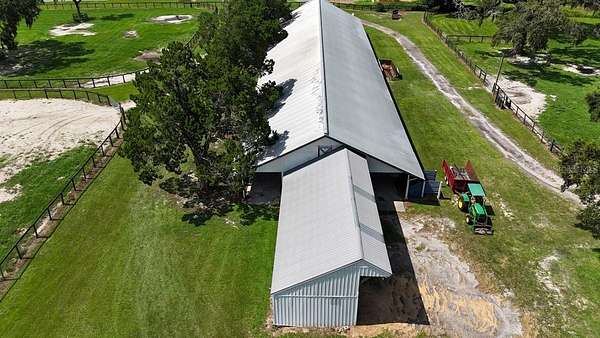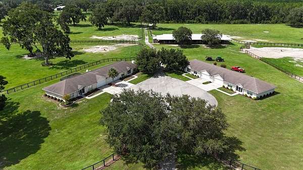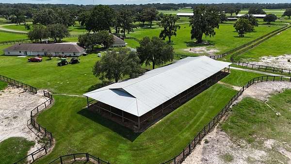 This is your opportunity to own part of the historic Hooper Farm. Located just 7 miles from the World Equestrian Center is this 81 +/- acre farm with 3 large barns and a total of 68 stalls. There are 2 duplexes each with 2 units featuring 2 bedrooms, 1 bath and a 2 car garage. These would be great for guests, clients, or employees. Each unit has their own private courtyard for privacy. The barns are shedrow style barns. There is a round pen, hot walker, and an equipment storage building. The farm would be suitable for a variety of disciplines and uses. There is a yearly fee if you want to the use the 1 +/- mile Nelson Jones Training Track. Many historic horses have been bred, raised and trained on this beautiful farm. This is your chance to own a part of the rich Thoroughbred history of Marion County.