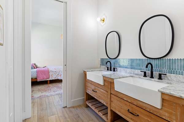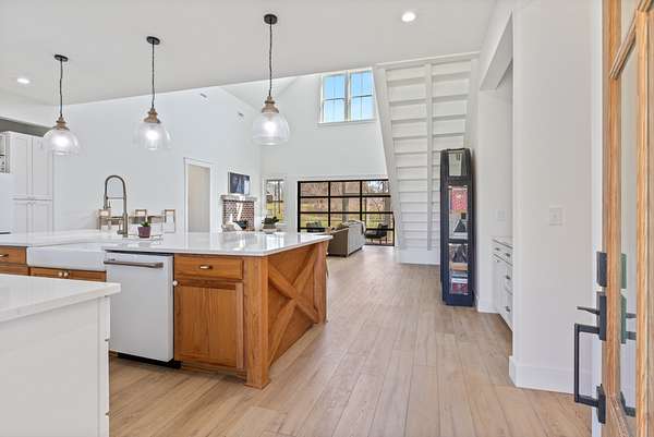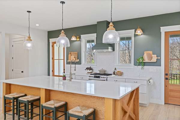 This home is the perfect balance of feeling peaceful and quiet while being just a 8 minute drive into Dickson, TN. Nestled on over 5 acres of serene countryside with creek access, this home offers the perfect blend of quiet luxury and nature. The heart of the home is the spacious kitchen, featuring a massive island with sleek white quartz counter tops, GE Cafe appliances, and a designated coffee bar--perfect for entertaining. The kitchen is open to the dining and living areas--this open concept area boasts 24' ceilings. In the living room you will find a glass garage door that fully opens to a large screened in porch, ideal for indoor/outdoor living. Whether you are enjoying the master suite, large laundry/office area, large bonus room, or the views from the screened in porch, this is surely a house you don't want to miss. New landscaping also has a built-in irrigation system.