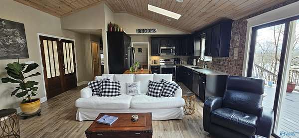 GLENCOE/S.S.-MAIN CHANNEL WATERFRONT-Beautiful stacked stone/hardy board exterior w/front porch & manicured lawn. Walk-in to a comfortable, appealing, with a touch of rustic open floor plan home w/Kit. & GR, luxury tile thru-out home, FP w/gas logs, DR has beautiful view of river plus luxury tile. Two Master BRs & bath each updated w/tile showers, all BR's have access to baths, Master is exquisite w/view of river, lots of windows & pine ceilings. Basement is open & unfinished, including laundry area. Exit to outside patio w/view. Lg. deck overlooking yard, rock terraces & river, covered boat slip, price includes 2 lots (2+ acres) and a spectacular view of main River. $625,000.